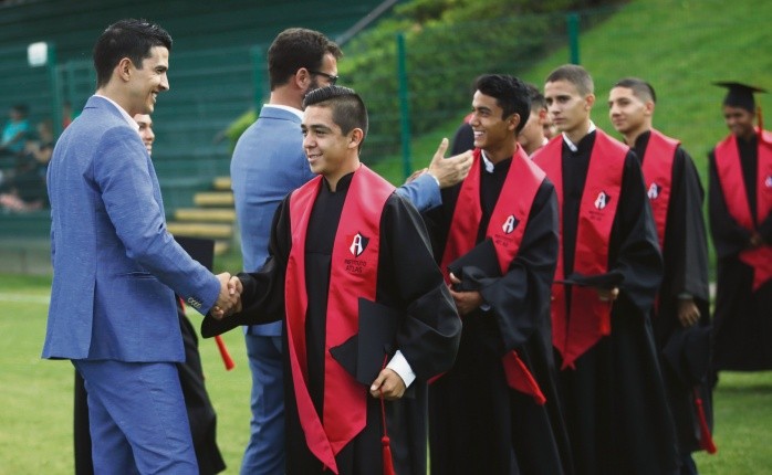 El hecho de que las Fuerzas Básicas del Atlas poco a poco se conviertan nuevamente en base de las diferentes Selecciones mexicanas, tiene al director de la cantera rojinegra, Albert Espigares, con la felicidad a flor de piel, toda vez que sus jugadores han disputado torneos de alta relevancia internacional en el verano que recién terminó, como el Torneo Esperanzas de Toulón, Mundial Sub-20 y Juegos Panamericanos de Lima 2019.“Al final sentimos mucha satisfacción, porque esto es fruto de trabajo y más trabajo, no hay magia, entonces el poder ver que se van dando los resultados con nuestros jóvenes y que los equipos juveniles están dando resultados y que al final les llegue la recompensa de poder estar en Seleccion, es infinitamente gratificante el saber que están en el buen camino y queremos seguir trabajando, de momento estamos muy contentos, pero hace falta mucho por conseguir todavía”, indicó el directivo español.Los jugadores de cantera más relevantes que están hoy en día con el primer equipo de los Zorros que dirige Leandro Cufré, son José Hernández, Ismael Govea, Diego Barbosa, Brayton Vázquez, Jairo Torres, Edson Rivera y Ulises Cardona, que, aunque no surgió meramente del Atlas, sí lo consideran de casa.“Para nosotros es muy importante que estos jóvenes sean seres de bien, pero no podemos dejar de lado que somos un club formador que es importantísimo el trabajo con nuestros jóvenes y que al final nuestro objetivo es mandar jugadores a Primera División y lo hagan cumpliendo no solo en Atlas, sino en Selección, porque es un motivo de alegría para ellos el seguir creciendo”, apuntó.Albert Espigares aceptó que la cantera del Atlas está batallando más de lo normal con el armado del primer equipo, esto por la presencia de 12 jugadores extranjeros inscritos ante la Liga MX, pero reconoció que sus chavos tienen la calidad para buscar y ser titulares con el equipo de sus amores.El director de Fuerzas Básicas estuvo presente en el evento de fin de ciclo del Instituto Atlas.El Instituto Atlas está de manteles largos, ya que por primera vez desde la llegada de Grupo Orlegi al mando del equipo rojinegro, la organización educativa que es gestionada por los Zorros, ha celebrado el evento de graduación de los niveles de educación secundaria y preparatoria. El Club Atlas Colomos fue el escenario en donde conmemoraron el fin del programa académico un total de 20 estudiantes; cinco de bachillerato y 15 de secundaria. El presidente del equipo, Pedro Portilla, encabezó la ceremonia.