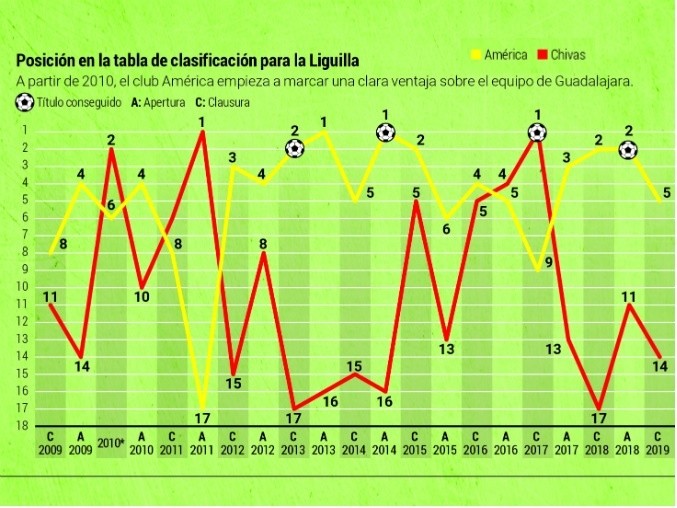 No es que las distancias entre América y Chivas sean tan obvias, profundas u odiosas.Las Águilas y el Rebaño no manejan números tan dispares en la contabilidad total de las Liguillas desde 1996, que se instauraron los torneos cortos. En realidad, son otras escuadras las que dominan los campeonatos de seis meses. Apenas siete Liguillas más tienen los capitalinos sobre el Rebaño en los torneos cortos.Las diferencias obvias, profundas y odiosas se dan a partir de 2010, cuando el Guadalajara se volvió un asistente ocasional a la Fiesta Grande y el América un habitual en la fase de definición del título.