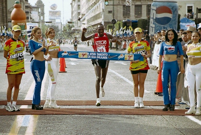 Por el amor que existe al deporte en esta ciudad, la Perla Tapatía se ha convertido en una de las capitales nacionales del atletismo, en especial, en las competencias de fondo como es el caso del Maratón Internacional de Guadalajara, evento atlético considerado como uno de los favoritos de todos los corredores mexicanos.A lo largo de 33 años, la capital jalisciense ha gozado y sufrido con la prueba más exigente del atletismo moderno que ha convertido a Guadalajara en una de las ciudades preferidas de todo Latinoamérica para la celebración de este tipo de fiestas deportivas que congregan a miles de participantes.Desde la primera hasta la más reciente edición, cada Maratón de Guadalajara ha contado con características que la han hecho una competencia única. Ya sea sus múltiples cambios de ruta, sus cierres de alarido o los triunfos de representantes mexicanos, pero este tipo de competición ha logrado afianzarse cada vez más como una de las mejores de todo el país.La primera ocasiónEl municipio de Tlaquepaque puede considerarse como la cuna de las carreras pedestres en la región, ya que desde los años sesenta se realizaban este tipo de competencias en los 5 y 10 kilómetros, sin embargo, no existían carreras de mayor distancia en todo Jalisco, por lo que para 1984 se buscó la creación del Maratón de Guadalajara, mismo que al final de cuentas terminó siendo únicamente Medio Maratón.Para el 26 de febrero de 1984, la Perla Tapatía fue testigo de la primera competencia atlética de fondo que se realizaba en sus calles. Esta primera edición fue ganada por el mexicano Audón Hernández, seguido por Pedro Lara (foto, a la derecha) y Raúl Hernández.La segunda fue la vencidaTras haber afinado detalles, Guadalajara estuvo de manteles largos en la edición de 1985, cuando por fin se pudo celebrar el Maratón en las principales arterias de la capital jalisciense.Con la ruta completa ya establecida, esta segunda edición fue ganada por el tapatío Eduardo Blake (foto), quien recorrió los 42.195 kilómetros en un tiempo de 2 horas, 22 minutos y 22 segundos, mientras que el segundo lugar fue para el también jalisciense Antonio Navarro, quedándose con el tercer puesto el chihuahuense Alejandro Ontiveros. En la rama femenil, la ganadora fue la guanajuatense Esmeralda Gutiérrez.El inicio del dominio kenianoLa edición número 18 del Maratón de Guadalajara fue celebrada la mañana del 11 de febrero de 2001 y a partir de entonces los atletas africanos, especialmente de Kenia, se convirtieron en los amos y señores de esta competencia.Simon Sawe se convirtió en el primer atleta keniano en subir a lo más alto del podio tras haber cruzado la meta en un tiempo de 2 horas, 16 minutos y 25 segundos, dejando atrás a los mexicanos Procopio Hernández y Luis Reyes, quienes culminaron en segundo y tercer lugar, respectivamente. A partir de esta edición, los atletas de Kenia ganaron 10 ediciones consecutivas.El último mexicanoLuego de 13 años de dominio africano, el veracruzano Tomás Luna (foto, derecha) se convirtió en el último campeón mexicano en suelo tapatío al adueñarse del primer sitio en la edición de 2013, misma que ganó con un tiempo de dos horas, 18 minutos y 03 segundos.Luna se impuso a los kenianos Hilary Kimaiyo (foto, izquierda) y Christopher Kipyego en uno de los maratones más recordados, ya que fue hasta los últimos kilómetros cuando el atleta mexicano pudo dejar atrás a sus perseguidores. En la rama femenil, la ganadora fue la keniana Gladys Mokobi.Tres décadas de pasiónEl Maratón de Guadalajara cumplió sus primeros 30 años la mañana del 19 de octubre de 2014 y el festejo no pudo ser otro que ver cómo una atleta mexicana derrotaba a las africanas para subir al podio.La mexiquense Dulce María Rodríguez (foto) logró el triunfo en suelo tapatío al cronometrar un tiempo de dos horas, 42 minutos y 16 segundos, con los que superó a la keniana Dorcas Kangogo y a la veracruzana Liliana Cruz.En lo que respecta a la rama varonil, los kenianos Hilary Kimaiyo y Christopher Kipyego se quedaron con el primero y segundo lugar, mientras que el oriundo de Tlaxcala, Pedro Espinosa, fue el tercer sitio de la prueba.Esta edición fue la última que contó con su ruta tradicional con salida y meta frente a la Catedral de Guadalajara, ya que para 2015 toda la ruta tuvo que modificarse.