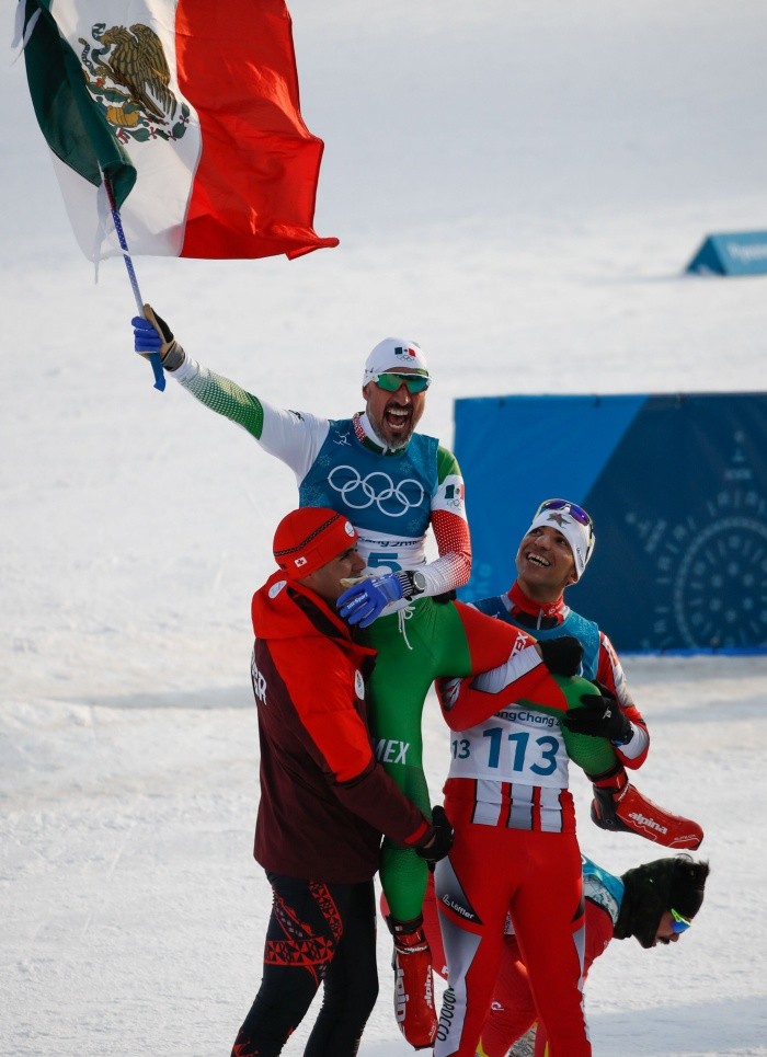 El mexicano Germán Madrazo, de 43 años, que aprendió a esquiar a hace poco más de un año, quedará como uno de los personajes de los Juegos de Pyeongchang, tras acabar este viernes con pundonor la prueba de 15 kilómetros de esquí de fondo, entrando en meta con la bandera de su país.El deportista azteca llegó en último lugar con 25 minutos y 51 segundos de retraso respecto al ganador, el suizo Dario Cologna."Empujamos hasta llegar al final y cuando llegamos, la vida me tenía reservada esta sorpresa con la bandera y los amigos que me cargaron", explicó Madrazo.Tras cruzar la meta fue levantado a hombros por otros dos competidores, el tongano Pita Taufatofua (que acabó 114) y el marroquí Samir Azzimani (111) en una imagen que quedará como una de las más destacadas de estos Juegos y una gran muestra del espíritu olímpico."Terminó siendo uno de los momentos más gratos de mi vida, con unas fotos que más allá del tiempo que hice y del desempeño pasarán a la historia. Fue un día mágico, duro. Hubo convergencia de muchas cosas, pero al final fue un día maravilloso. Dios quiso que así fuera para que se enriqueciera ese mensaje de sí se puede", explicó.Madrazo, que nunca se había calzado unos esquís hasta enero de 2017, entró en el puesto 116 de los 118 esquiadores que tomaron la salida, después de que dos abandonasen por el camino. Al pasar por la línea de meta portando la bandera mexicana, fue aplaudido por el público y por otros esquiadores.Madrazo había vendido muchos enseres para pagarse los cursos para aprender a esquiar y pidió préstamos a amigos para costearse viajes a las pruebas de clasificación a los Juegos, hasta que lo consiguió en su última posibilidad, cuando sonaba la campana, en Islandia a finales de enero."Tengo un sentimiento un poco encontrado. El atleta está un poco triste. Dos meses de haber estado entrenando a diario y el cuerpo hoy no iba, no se recuperó. Pero bueno, no se trata de hablar de eso. Hay veces que el cuerpo va, que el atleta va, y hay veces que no", explicó.Madrazo quería entrar en meta con la bandera mexicana en reconocimiento a su país por haberle elegido como abanderado entre los cuatro deportistas de la delegación en los Juegos. "Al llegar a la meta, tomé la decisión de agradecerle a México el favor que me hizo dándome la Bandera para llevarla en la ceremonia de apertura y devolvérselo, dándole a México la bandera en mi propia carrera, en mi línea de meta", señaló. "Es un momento muy íntimo de un atleta y decido cruzar la meta con la Bandera de México para decirle a mi país gracias por la confianza, gracias por el cariño y eso se torna en un momento increíble", añadió.La imagen de la entrada en la meta con la bandera le acompañará para siempre."Es una foto de un sentimiento indescriptible, lo más hermoso que me ha pasado en la vida. Existe una convergencia de sentimientos, por tener un mal día deportivo y al mismo tiempo el mejor día de mi vida. Es difícil de explicar lo que siento. Fue un gran día a pesar de que muchas cosas no iban bien, pero se luchó contra, todo contra viento y marea", incidió.El suizo Dario Cologna conquistó la medalla de oro, logrando su tercer título consecutivo en la disciplina y su cuarto oro en total.Aunque Madrazo le hizo sombra en cuanto a protagonismo en la carrera.