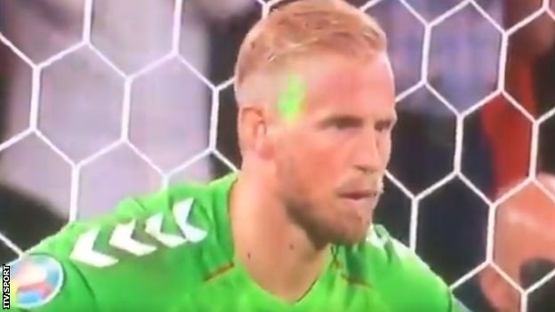 La UEFA sancionó a la Asociación de Fútbol inglesa después de que un láser fue usado desde la tribuna sobre el rostro del portero de Dinamarca, durante la semifinal de la Eurocopa 2020 el miércoles.En la transmisión de televisión, se pudo apreciar una luz verde sobre el rostro del portero Kasper Schmeichel justo antes de que Harry Kane lanzara un penalti en la prórroga.Schmeichel paró el lanzamiento, pero Kane aprovechó un rebote para marcar el gol que le dio a Inglaterra (2-1) el pase a la final contra Italia del domingo."No lo noté durante el tiro de penalti porque estaba debajo, a mi lado derecho", dijo el portero. "Pero lo noté en la segunda parte [del remate]. Se lo dije al árbitro y creo que fue y se lo contó a uno de los otros jueces de línea".El gol fue declarado válido.El público inglés también abucheó el himno nacional de Dinamarca antes del inicio del partido y se usó pirotecnia en la tribuna, lo cual también está prohibido."El caso será tratado por el Organismo de Control, Ética y Disciplina de la UEFA a su debido tiempo", se lee en un comunicado del organismo rector del fútbol europeo.La Asociación de Fútbol inglesa y funcionarios de la UEFA buscaron la fuente del puntero láser en la primera mitad del tiempo extra, cuando se dieron cuenta por primera vez de que se estaba utilizando.Sin embargo, no pudieron encontrar a los responsables.Una vez terminado el partido, las autoridades preguntaron a los representantes de la Unión Danesa de Fútbol si querían presentar una queja oficial, lo cual descartaron los nórdicos.A pesar de ello, la UEFA ha decidido proceder con la sanción.***Ahora puedes recibir notificaciones de BBC Mundo. Descarganuestra app y actívalas para no perderte nuestro mejor contenido.