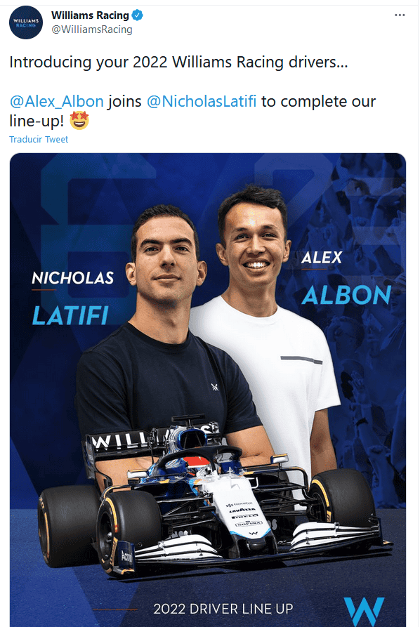 El piloto Alex Albon, conductor de reserva esta temporada en Red Bull, volverá a la Fórmula 1 de la mano de la escudería británica Williams, que le ficha en sustitución del también británico George Russell, informó la propia escudería.Esta campaña, Albon (Londres, 1996), no tuvo hueco en la parrilla, pero la reciente salida de George Russell a Mercedes ha provocado su vuelta a los monoplazas."Estoy muy emocionado y con muchas ganas de volver a un asiento de carreras de Fórmula Uno en 2022. Cuando te quitas un año de la F1, nunca es seguro que volverás, así que estoy muy agradecido a Red Bull y a Williams por creer en mí", expresó Albon.El piloto de 25 años comenzó su periplo en la Fórmula 1 de la mano de Toro Rosso en 2019. Un año más tarde dio el gran salto a la escudería principal, la austriaca Red Bull, y compartió equipo junto a Max Verstappen durante una temporada en la que no convenció a Christian Horner, jefe de equipo de Red Bull.Pese a ello, Horner se muestra contento con el acuerdo de Albon por Williams: "Nuestro objetivo era ayudarlo a encontrar un asiento en otro equipo donde pudiera ganar más experiencia en F1 y estamos encantados de haberlo hecho con Williams".Por su parte, Jost Capito, director ejecutivo de Williams declaró: "Alex es uno de los jóvenes talentos más emocionantes del automovilismo, pero viene con una gran cantidad de experiencia en F1 de su tiempo en Red Bull. Sus múltiples podios destacan su velocidad como piloto, y sabemos que inmediatamente se sentirá como en casa".El piloto canadiense Nicholas Latifi será el compañero de Albon la próxima temporada. Williams renueva así al piloto que lleva con ellos dos temporadas, desde la marcha del piloto polaco Robert Kúbica en 2019.¿Quieres saber más?Si quieres tener más contenido, más imágenes y aún más noticias, entonces descarga INFORMAPlus, la aplicación digital de EL INFORMADOR, donde tenemos materiales exclusivos para ti.Descarga la aplicación y pruébala GRATIS por treinta días.Si eres suscriptor de EL INFORMADOR tu acceso está incluido, solicítalo al 33 3678-7777OF