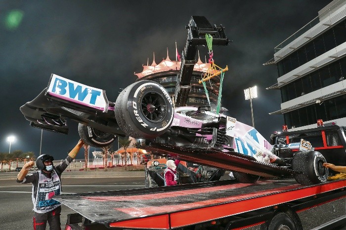 Bien dicen que en ocasiones los fierros son traicioneros y Sergio “Checo” Pérez lo supo ayer de primera mano.El piloto tapatío hacía una carrera por nota en el Gran Premio de Bahréin, girando en el tercer sitio a lo largo de gran parte del desarrollo del mismo, pero una repentina falla en su motor a tres vueltas del final, que causó que se prendiera fuego, le arrebató la posibilidad de lograr el décimo podio de su carrera, segundo de manera consecutiva en esta temporada.“Es difícil, es un día muy triste para el equipo. Fuimos perfectos, ejecutamos un fin de semana perfecto. Los puntos que teníamos eran cruciales y perderlos es muy duro, no lo veíamos venir”, declaró Pérez Mendoza al terminar la carrera.El jalisciense traía consigo una racha de 18 carreras consecutivas dentro de los puntos, la cual se vio cortada con este abandono; además, Pérez perdió una posición en el campeonato de pilotos, pues ahora es superado por Daniel Ricciardo quien es cuarto con 102 puntos, contra los 100 de Checo en la quinta posición.“Es difícil encontrar palabras para describir lo que ocurrió. El podio era nuestro, por mucho lo teníamos en la bolsa y al final no ocurrió”.Pérez Mendoza no tuvo mayores sobresaltos sobre la pista de Sakhir, en la que Lewis Hamilton logró la victoria 95 de su carrera, seguido de Max Verstappen y Alex Albon, quien fue el principal beneficiario del abandono del tapatío.Resultado poco relevanteSin embargo, Checo dejó de lado el mal sabor de boca causado por este abandono al afirmar que fuere como fuere, el resultado de ayer termina por ser irrelevante tras lo ocurrido al arranque con el francés Romain Grosjean.“Íbamos a tener un podio que estaba en la bolsa, pero también eso es un poco irrelevante, un podio más, uno menos, da igual. Lo importante es que (Romain) Grosjean está bien. Fue un accidente muy duro de ver y eso es lo que importa en el día”.Hoy, el tapatío tiene una comparecencia con los medios de comunicación, en la que se espera defina su futuro para el próximo año, en el que se vislumbra incluso tomar un descanso de toda actividad en el Gran Circo.1. Lewis Hamilton 332 puntos 2. Valtteri Bottas 201 puntos 3. Max Verstappen 189 puntos 4. Daniel Ricciardo 102 puntos 5. Sergio Pérez 100 puntos 6. Charles Leclerc 98 puntos 7. Lando Norris 86 puntos 8. Carlos Sainz 85 puntos1. Mercedes 533 puntos 2. Red Bull 274 puntos 3. McLaren 171 puntos 4. Racing Point 154 puntos 5. Renault 144 puntos 6. Ferrari 131 puntos 7. AlphaTauri 97 puntos 8. Alfa Romeo 8 puntos 9. Haas 3 puntos 10. Williams 0 puntosTras sufrir un espectacular accidente al inicio del Gran Premio de Baréin que acabó con su monoplaza en llamas, el piloto francés Romain Grosjean tuvo “quemaduras en ambas manos”, pero sin fracturas.Al darse la salida a la carrera, en la tercera curva del trazado de Sakhir, Grosjean se salió de la pista tras tocarse con el ruso Daniil Kvyat (AlphaTauri) y chocó a gran velocidad contra las barreras de protección.En el impacto, el chasis se partió en dos provocando un incendio, del cual salió el francés tras 18 segundos y asistido por el personal del coche médico de la FIA.JL
