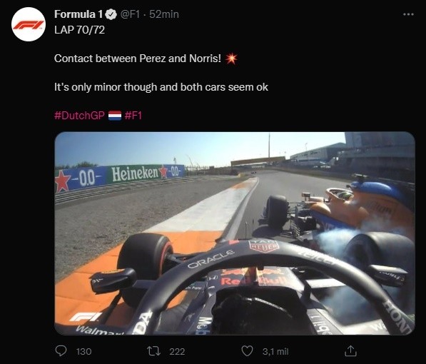 Lo volvió a hacer el piloto mexicano. Sergio “Checo” Pérez logró una remontada de 12 posiciones en el Gran Premio de Países Bajos y sumó unidades importantes para la escudería de Red Bull tras haber finalizado octavo lugar en el circuito de Zandvoort.“Checo” Pérez arrancó desde la última posición tras ser penalizado en la parrilla de salida por su cuarto cambio de motor en la temporada y ya se había metido en la pelea directa por la zona de puntos tras la mitad de la carrera en las primeras 36 vueltas.Fue a falta de poco más de 15 giros cuando Pérez libró una verdadera batalla contra Lando Norris de McLaren, pues al momento en que “Checo” Pérez intentó atacar al británico hubo un roce de neumáticos y ambos pilotos corrieron el riesgo de abandonar la carrera.Para fortuna de Sergio, el roce no pasó a mayores y se mantuvo en la competencia donde aprovechó las últimas vueltas para meterse hasta el octavo lugar tras dar cuenta del francés Esteban Occon.“Checo” Pérez sumó así cuatro valiosos puntos para una escudería de Red Bull que además celebró la séptima victoria de la temporada de Max Verstappen, quien logró recuperar el liderato de la Fórmula Uno tras superar a sus dos rivales de Mercedes que completaron el podio de este Gran Premio de Países Bajos.Lewis Hamilton terminó en la segunda posición, pero sumó un punto extra tras conseguir en la recta final la vuelta rápida de la carrera; mientras que su co-equipero de Mercedes, Valtteri Bottas, se agenció la tercera posición.***Si quieres tener más contenido, más imágenes y aún más noticias, entonces descarga INFORMAPlus, la aplicación digital de EL INFORMADOR, donde tenemos materiales exclusivos para tí.Descarga la aplicación y pruébala GRATIS por treinta días. Para iOS: https://apple.co/35jaVgbPara Android: https://bit.ly/3gwVSEVSi eres suscriptor de EL INFORMADOR tu acceso está incluido, solicítalo al 33 3678-7777AC