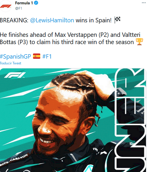 Con una impecable ejecución de estrategia, Lewis Hamilton rebasó a Max Verstappen a seis vueltas del final para llevarse el domingo la victoria en un vibrante duelo en el Gran Premio de España e incrementó la ventaja sobre su máximo rival por el campeonato de la Fórmula 1.Al volante de su Red Bull, Verstappen logró desplazar a Hamilton, ganador de la pole, en la primera curva para adelantarse temprano en el circuito de Barcelona-Catalunya.Pero la estrategia de Mercedes de apelar a un par de repostajes para que Hamilton tuviera neumáticos más frescos en el tramo final, rindió dividendos cuando dejó atrás al holandés en la agonía de la carrera.Después de alcanzar su pole número 100 el sábado, Hamilton festejó su 98na victoria. También empató el récord de Michael Schumacher de seis victorias en el GP de EspañaHamilton lidera la clasificación de pilotos con una diferencia de 14 puntos sobre Verstappen, quien se embolsó el punto de bonificación por la vuelta más rápida.Valtteri Bottas, compañero de Hamilton en Mercedes, completó el podio. El cuarto puesto para Charles Leclerc con un Ferrari y el mexicano Sergio Pérez quedó quinto con el otro Red Bull.GC