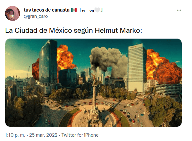 El Gran Premio de Arabia Saudita 2022 de Fórmula 1 (F1) tuvo una jornada complicada este viernes, luego de que se registraran ataques por parte de grupos rebeldes de Yemen en un depósito de petróleo en Yeda, donde se realizará la carrera el domingo. Pero otra noticia acaparó la atención después, cuando Helmut Marko, jefe del piloto mexicano en Red Bull, Sergio "Checo" Pérez, comparó lo ocurrido con la inseguridad que se vive en la Ciudad de México y desató la polémica.Luego de que se reportan los ataques, la segunda sesión de los entrenamientos libres se retrasó y comenzó 15 minutos después de lo programado; también se convocó a una reunión de emergencia entre el director general de la F1 Stefano Domenicali, los pilotos, y los directores de equipo, para ponerlos al tanto de lo que sucedía.Helmut Marko dijo al respecto que como los pilotos se dieron cuenta de lo que ocurría debido a la nube oscura que cubría el cielo y el olor a quemado."No nos afectó directamente. Max nos envió un mensaje de radio. Pensó que su coche estaba en llamas porque había un intenso olor a quemado. Luego comprobamos todos los datos: no era eso. Pero sí notó el olor a quemado de la explosión", dijo el directivo austriaco a la cadena Sky News."Posteriormente, nos informaron de que se había enviado un dron desde Yemen. Los saudíes tienen un sistema de defensa aérea y por alguna razón el dron no fue interceptado y luego llegó el ataque. Creo que el momento es deliberado. Los rebeldes saben que tendrán mucha más publicidad en el Gran Premio". Luego explicó que los pilotos de Red Bull han reaccionado de maneras diferentes a la noticia, y puso como ejemplo lo que ocurrió con el mexicano "Checo" Pérez, y agregó que le parecía extraño que viviendo en México se sintiera nervioso."Max está un poco más relajado al respecto. Pérez está un poco asustado, pero vivir en la Ciudad de México no es mucho más seguro".Lo curioso es que "Checo" Pérez no vive en la CDMX, sino en Guadalajara, Jalisco.Hasta el momento la carrera sigue en pie, y se correrá el Gran Premio de Arabia Saudita 2022 como está programado, el domingo 27 de marzo."Tenemos la pandemia, tenemos la guerra en Europa y ahora tenemos un ataque con misiles de facto a 20 kilómetros de nosotros. Ya no es normal ni agradable", dijo Marko.Y concluyó: "Como se ha mencionado estos ataques con drones creo que son con frecuencia. Tienen un sistema de defensa muy bueno. Ahora hay que averiguar por qué no ha funcionado. No es el primer dron, después de todo. Pero es el primero que ataca a gran escala. No debemos dejar que el terror intimide por completo la vida normal. Debemos mirar ahora, y si la seguridad está garantizada para los próximos dos días, entonces debemos seguir".Luego de que Helmut Marko comparara los ataques con drones por parte de grupos rebeldes en Arabia Saudita a la inseguridad que se vive en la Ciudad de México, twitteros no perdieron el tiempo y han expresado su sentir.OF