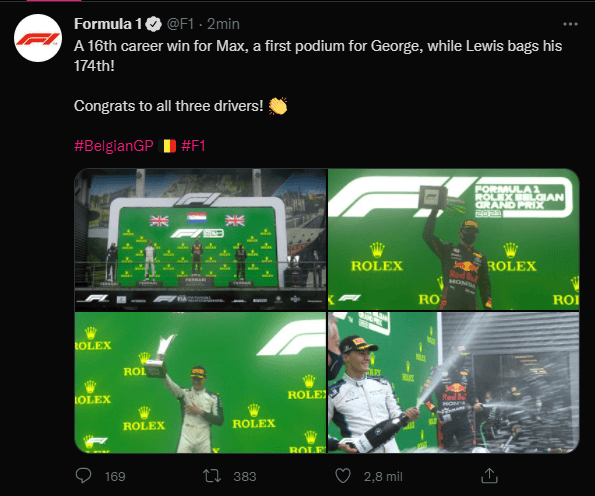 Se intentó, pero la lluvia no dio tregua y el Gran Premio de Bélgica terminó de manera abrupta, pues luego de dos vueltas oficiales la carrera se detuvo por bandera roja y se tomó la determinación de no reanudarla.La jornada fue complicada desde el inicio, pues debido al mal clima la carrera se retrasó durante más de tres horas, y a pesar de que se tomó la determinación de disputar el Gran Premio a contrarreloj con duración de una hora, al final esto tampoco pudo completarse debido a la incesante lluvia.Por desgracia para el espectáculo, antes de que llegara la última bandera roja de la carrera los pilotos lograron culminar dos vueltas oficiales detrás del Safety car, y de esta forma se cumplió con lo necesario para tener una clasificación oficial.Al no ser necesaria la reprogramación de esta carrera para otra fecha, Max Verstappen logró el primer lugar en el Gran Premio de Bélgica y el podio fue completado por George Russel de Williams y por Lewis Hamilton de Mercedes, pilotos que se ubicaron en el segundo y tercer puesto respectivamente. Debido a que se había tomado la determinación de realizar esta carrera a contrarreloj, cada piloto recibió sólo la mitad de los puntos que originalmente estaban en juego.Sobre el triunfo, Max dijo: “Es una victoria, pero no la forma en que quieres ganar. Creo que el mérito es de los aficionados que se quedaron aquí en estas condiciones de lluvia”.A pesar de que esta fue una jornada complicada para todos en la Fórmula 1, la de Sergio Pérez fue en especial accidentada, pues justo cuando se dirigía a la parrilla de salida, el piloto mexicano se estrelló contra la barrera de neumáticos y esto lo dejó momentáneamente fuera de la carrera.Posteriormente, debido al retraso por la lluvia y al gran trabajo de Red Bull, el auto de “Checo” pudo ser reparado y los comisarios dieron el visto bueno para que Pérez arrancara este Gran Premio desde los pits.Por desgracia para el mexicano, el clima no mejoró y la carrera no pudo realizarse de manera en que le permitiera remontar algunas posiciones. Pese a esto la jornada no fue del todo mala para Red Bull, pues Verstappen volvió a quedarse con el puesto de honor y Sergio Pérez (quinto actualmente) no perdió posiciones en el Campeonato de Pilotos.***Si quieres tener más contenido, más imágenes y aún más noticias, entonces descarga INFORMAPlus, la aplicación digital de EL INFORMADOR, donde tenemos materiales exclusivos para tí.Descarga la aplicación y pruébala GRATIS por treinta días. Para iOS: https://apple.co/35jaVgbPara Android: https://bit.ly/3gwVSEVSi eres suscriptor de EL INFORMADOR tu acceso está incluido, solicítalo al 33 3678-7777AC