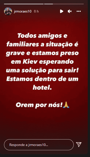 Futbolistas brasileños del Dinamo Kiev y el Shakhtar Donetsk han pedido públicamente, en un video junto a sus familias, ayuda para salir de Ucrania tras el inicio del conflicto bélico con Rusia.Junior Moraes, que llegó a Ucrania en 2017 para jugar en el Dinamo Kiev y que ahora milita en el Shakhtar, publicó en su cuenta de Instagram una llamada de auxilio: "La situación es muy grave para todos nuestros amigos y familiares. Estamos atrapados en Kiev y esperando una solución".También publicaron un video en el que aparecen con sus familias, en el que explican que están esperando en un hotel y piden ayuda a las autoridades gubernamentales brasileñas para poder salir del país."Estamos con los hijos, los niños, y nos sentimos un poco abandonados porque no sabemos lo que hacer, las noticias no llegan hasta nosotros anunciadas por Brasil y apelamos a ustedes hasta por los niños... ", dijo una de las parejas de los futbolistas. OF