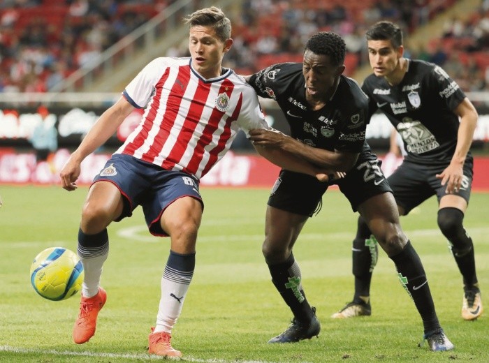 Con el Guadalajara de Matías Almeyda, las leyes aritméticas y los preceptos de la lógica no tienen cabida.Chivas llega más que su rival, pero anota menos. Merece ganar, pero es afortunado de no perder.Es la historia de casi todo el torneo, y la de anoche también. Acaso la única diferencia es que no perdieron de nueva cuenta, pues la suerte les sonrió en los minutos finales y terminaron empatados 1-1 con Pachuca, ante poco más de 27 mil aficionados en el Estadio Akron.El punto sirve de poco al Rebaño, que con seis unidades se mantiene en la parte baja de la tabla y lejos de los puestos de Liguilla.En la búsqueda de los resultados positivos, Almeyda hizo cinco cambios para enfrentar a los Tuzos.Por Jesús Sánchez, que no se recuperó de un golpe en Querétaro, jugó Carlos Cisneros. En la zaga estuvo Basulto en lugar de Pereira, quien fue a la banca.Por los costados, Almeyda mandó de inicio a Pizarro y a Gael Sandoval en lugar de la “Chofis” y Brizuela, y adelante a Godínez en lugar de José Juan Macías.Lejos de desconcentrarse, Chivas tuvo la pelota, envolvió al rival y tuvo las mejores aproximaciones, pero no anotó.En el segundo tiempo las cosas se mantuvieron igual. La pelota y las llegadas eran de Chivas, pero no mecían las redes.Y como cada noche en este estadio, el rival requirió de una sola para marcar: al 71’ Aguirre metió el centro donde Sagal remató entre los dos centrales para el 1-0.A diferencia de otras noches, la suerte le sonrió al Rebaño.Primero, porque dos minutos después del gol el “Dedos” López se equivoca y abraza a Pulido en el área para que Alanís anote por la vía del penalti.Después, porque a cinco minutos del final Sagal estrella en el poste el cobro de una pena máxima tras un penalti de Alanís sobre el mismo chileno.Merecía ganar, debió perder; el mundo Almeyda.Regreso de ultratumba Tras recibir el gol de Pachuca en uno de esos clásicos momentos donde los agarran mal parados, los rojiblancos encontraron a los dos minutos el tanto del empate luego de un penalti que comete el “Dedos” López sobre Pulido y que Alanís cambia por el 1-1 antes de que el Rebaño se cayera.Lo de siempre Tras el empate, Matías Almeyda, que había hecho un par de cambios donde sólo refrescó al equipo sin modificarlo de manera sustancial, sacó a Orbelín de la contención para meter a Macías en ataque. Con Pulido, Godínez (foto) y el recién ingresado como delanteros, pasó lo de siempre: se dejó de llegar.Guiño de la fortuna En otra jugada donde los toman abiertos tras perder el balón en ataque, Alanís comete falta sobre Sagal en un contragolpe fulgurante. Mucha gente no se esperó al cobro del penalti. Sagal engañó en su cobro a Cota, pero su disparo cruzado se estrelló en el poste izquierdo. Al Akron le volvió el alma al cuerpo.No es casualidad que el “Tortas” haya tenido en la banca en distintos momentos del torneo a Carlos Salcido y a Orbelín Pineda. Michael es el equilibrio de Chivas en la cintura del terreno de juego. El volante recuperó balones al por mayor y tuvo un alto porcentaje de pases correctos.Después de otro encuentro en el que el Guadalajara no logra la victoria, el dueño del equipo, Jorge Vergara, le dio un espaldarazo a su técnico Matías Almeyda.Misma historia Rubén Rodríguez (analista Fox Sports)Lo de Chivas es la misma historia de cada semana, juega bien, controla el partido, domina al adversario, genera profundidad y llegadas de gol, pero, el maldito pero rojiblanco: no es contundente y abajo tienen errores de ubicación y comunicación que les cuesta en el marcador. Anoche tuvieron la fortuna de la reacción inmediata, pero los puntos se les van y el torneo de acorta.