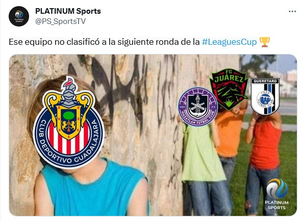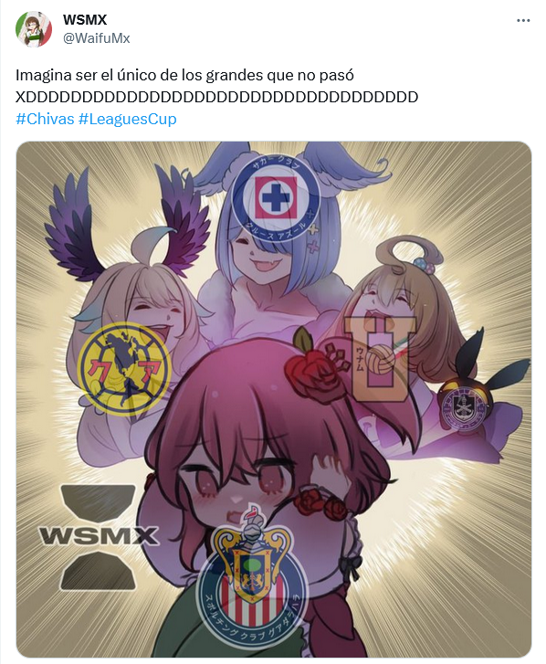 Por varias semanas, aficionados de los equipos de la Liga MX, sobre todo de los llamados "grandes", hablaron sobre la posibilidad de ganar el título de la Leagues Cup ante los equipos de la MLS, a los que no ven como rivales complicados. Sin embargo, la fase de grupos dejó varias sorpresas que, por supuesto, trajeron consigo numerosos mensajes y creativos memes.Ayer, Chivas se confirmó como la decepción de la Leagues Cup. Pese a que apareció en el torneo que organizan las ligas de México y Estados Unidos, como el líder del futbol mexicano con racha invicta, en esta competencia cayó en los dos partidos que disputó y fue eliminado sin sumar un solo punto. América ganó, goleó y gustó en su debut ante el St. Louis City, pero ayer también hizo un ridículo monumental al perder por 4-1 ante Columbus Crew, equipo que remontó y terminó apaleando a las Águilas por 4-1, para terminar como primero de su grupo.Cruz Azul perdió el primer partido y empató el segundo. Después de un apretado empate de 1-1 en los 90 minutos disputados en el Mercedes-Benz Stadium, los del "Tuca" vencieron (5-4) en tanda de penaltis al Atlanta United para alcanzar su boleto a los dieciseisavos de final.Pumas no sólo consiguió su boleto a los dieciseisavos de final de la Leagues Cup, lo hicieron como líderes de su grupo con cuatro puntos. Los de la UNAM enderezaron el rumbo y tras caer en penaltis ante el CF Montréal, golearon (3-0) al DC United para acceder a la siguiente ronda de la Leagues Cup.Y ante la eliminación de seis equipos de la Liga MX, otros representantes mexicanos sí tuvieron una buena presentación.Avanzaron como líderes de su grupo Tigres, Monterrey, León y Toluca; Atlas también lo hizo así, al igual que Pumas.Mazatlán sorprendió al ser el primer conjunto azteca en ganar a uno de la MLS en la presentación del torneo, y ser el primero también en avanzar a la siguiente ronda.América, Cruz Azul, Querétaro y Juárez avanzaron... pero en el segundo lugar de sus grupos. OF