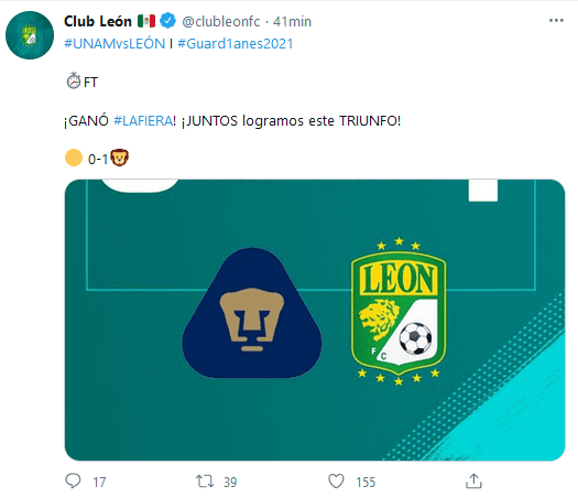 El delantero ecuatoriano Ángel Mena anotó un gol en el segundo tiempo y eso le bastó a León para derrotar el domingo 1-0 a Pumas en la reedición de la última final del fútbol mexicano.Mena convirtió el único tanto del encuentro a los 68 minutos y la Fiera quebró una racha de dos derrotas.Con el triunfo, León llegó a siete unidades y se ubica en la 12da posición del torneo Clausura cuando restan tres partidos para completar la séptima fecha.La Fiera, que todavía tiene un partido pendiente ante Monterrey, extendió a ocho su racha de partidos sin perder ante Pumas ante quienes no caen desde el 1 de septiembre de 2018.Dentro de esa racha se encuentran los dos partidos por la final del Apertura pasado, cuando León alzó la octava corona de su historia.Pumas extendió su crisis, con tres derrotas consecutivas y cinco partidos sucesivos sin ganar. Cosecha apenas cinco puntos para ubicarse en la 16ta posición entre los 18 equipos de la máxima categoría.Aunque el domingo reapareció su delantero argentino Juan Dinenno, los universitarios también alargaron una sequía goleadora que se remonta alminuto 70 del partido ante Mazatlán, por la segunda fecha.León generó la primera llegada de peligro en el partido a los 21 minutos con un intento de Mena que fue contenido por el portero Alfredo Talavera.Pumas respondió 10 minutos más tarde con un remate de Juan Pablo Vigón que el portero Rodolfo Cota repelió sin problemas.Cota se destacó al final de la primera parte al realizar complicadas atajadas a los disparos del panameño Gabriel Torres y Carlos Gutiérrez.Los visitantes fueron mejores en el complemento y pusieron en apuros a Talavera con disparos del chileno Víctor Dávila y Luis Montes.La Fiera se puso al frente cuando el chileno Jean Meneses mandó un pase largo para Mena, quien a la entrada del área sacó un disparo que por fin pudo superar a Talavera.Pumas rozó el empate a los 72, cuando Vigón recibió un centro por derecha y conectó un remate de cabeza dentro del área que se estrelló en la base del poste izquierdo.GC