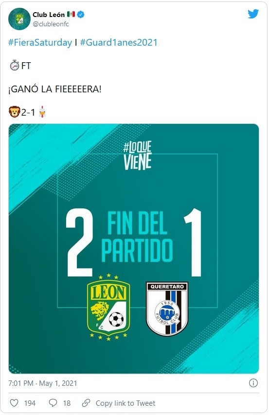 Los Panzas Verdes del León derrotaron, con un doblete de Ángel Mena desde el cobro de tiro penal (2-1), a los Gallos Blancos de Querétaro en duelo de la última jornada de la Liga MX.A la espera de lo que hagan Santos y Monterrey, los felinos verdes se ubican momentáneamente en el cuarto puesto de la clasificación con 26 unidades.Los primeros minutos fueron parejos, pero los visitantes perdieron el ánimo con la caída del primer gol del León: al minuto 38, Ángel Mena aprovechó el cobro desde los once paso para adelantar al conjunto local.Para el complemento, la misión del León fue anotar el segundo para afianzar su lugar en la reclasificación, mientras que los Gallos buscaban empatar para continuar con sueños de estar en la siguiente fase.El VAR hizo su aparición al minuto 63 al marcarle al árbitro Jorge Isaac Rojas una falta dentro del área que el silbante marcaría sin revisar. El balón lo tomo Ángel Mena y clavó el segundo gol de la fiera.La reacción llegó tarde, al minuto 66, con una asistencia de chilena de Ángel Sepúlveda después de un tiro libre, y con un lance de palomita de Alexis Doldán movió las redes al enviar el pelota.Los Gallos del Querétaro quedan fuera de la zona de reclasificación al estar en la posición 13.JM