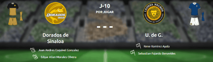 Este sábado los Leones Negros de la Universidad de Guadalajara visitan a los Dorados dirigidos por Diego Armando Maradona y en sus redes sociales anticipan que preparan una sorpresa para su afición.En la página de la Liga de Ascenso, la ficha del partido ya muestra los diagramas de la indumentaria que utilizarán ambos equipos y ahí se confirma que los de la UdeG utilizarán un jersey azul con cuello en "V" y short en blanco con calcetas azules.Este diseño sería una reminiscencia de la vestimenta que utilizaron los Leones Negros a mediados de la década de los setenta.El partido de Dorados vs Leones Negros tendrá lugar este sábado a las 19:00 horas en el Estadio Banorte de Culiacán, Sinaloa.La indumentaria azul no se vio durante la presentación del equipamiento con la marca Umbro antes del inicio del actual torneo, lo que aumenta la expectativa para este fin de semana.Según el sitio del Ascenso MX, este uniforme sería el tercer conjunto registrado de los universitarios para este torneo.Ante el entusiamo que ha despertado la nueva indumentaria de Leones Negros, en la página oficial del equipo ya se notifica a la afición de la próxima salida a la venta de la ropa de juego del presente torneo cuya manufactura corre a cargo de la compañía inglesa Umbro.