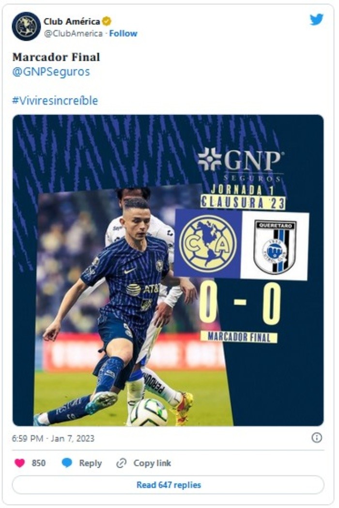 América tuvo una presentación infumable en el torneo Clausura 2023. De nada le sirvió dominar el encuentro a placer y se tuvo que conformar con un empate sin goles ante Querétaro en el Estadio Azteca.