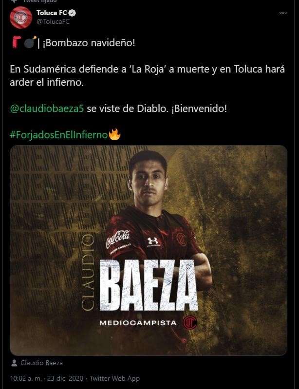 En estos tiempos donde los equipos de la Liga MX se encuentran de vacaciones o comienzan a realizar sus trabajos de pretemporada de cara al Guard1anes 2021, es muy común que en sus redes sociales den pistas o anuncien a sus fichajes.Pero es muy raro que se equivoquen en anunciar a sus nuevos futbolistas, situación que ocurrió con el Toluca. Los Diablos Rojos anunciaron como un bombazo navideño a Claudio Baeza; sin embargo, utilizaron una foto de Juan Antonio Delgado.Posteriormente, la publicación fue borrada de sus redes sociales para corregir el anuncio de la llegada del mediocampista chileno. De inmediato los aficionados del Toluca se dieron cuenta del error y comenzaron con las burlas.El chileno Claudio Baeza llegó al futbol mexicano para el Apertura 2019 para jugar con el Necaxa. En los Rayos disputó 43 partidos y marcó dos anotaciones.OF