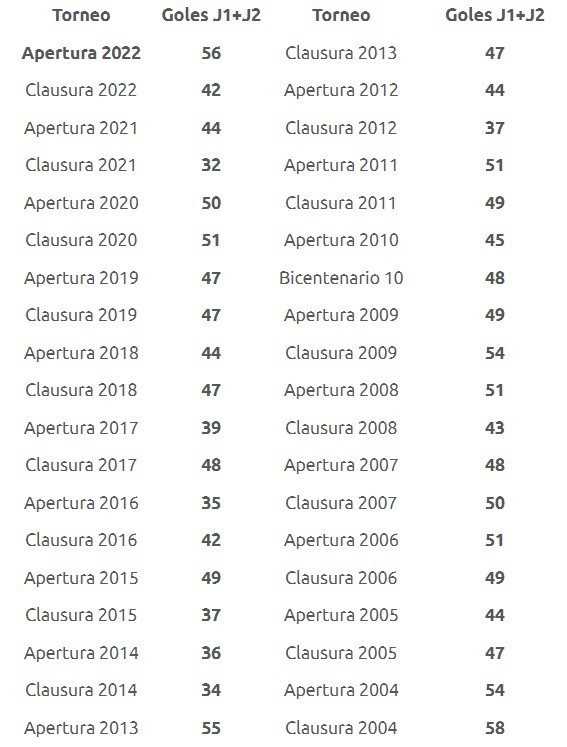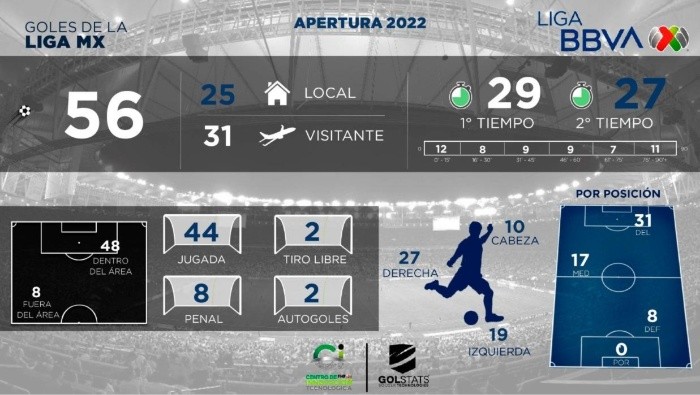 Apenas se han disputado dos Jornadas del Apertura 2022 y ya hemos tenido partidos espectaculares, dignos de la Fase Final de la Liga MX. El Santos vs Monterrey de la Fecha 1, el Toluca vs Atlas de la Jornada 2 e incluso el León vs Pumas, son solo algunos de los partidos que han generado que este sea el mejor inicio goleador de un campeonato en los últimos 18 años.Tan solo en la Jornada 1, se marcaron 29 goles entre los 9 partidos que se disputaron. Esto significó el mejor inicio en 12 años. Para la Fecha 2, esta tendencia se mantuvo y es que se registraron 27 tantos en los nueve juegos. En total, se han marcado 56 goles en 18 partidos. Para encontrar una mejor cifra debemos remontarnos al Apertura 2004 donde hubo 58 goles producto de los primeros 18 partidos del torneo. Hasta el momento, el Apertura 2022 tiene un promedio de 3.1 goles por partido. Del total de los 56 goles, 25 han sido anotados por el equipo local y 31 por el conjunto visitante según datos compartidos por la propia Liga MX. Chivas es el único equipo de la Liga MX que no ha marcado todavía en el Apertura 2022. JL