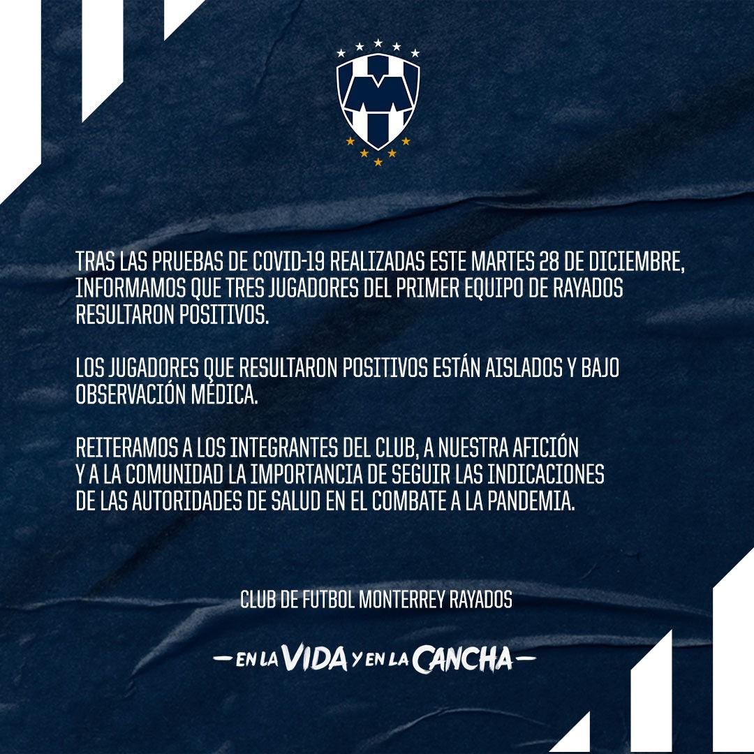 Previo al duelo amistoso ante Correcaminos, los tres porteros de los Rayados de Monterrey, preocuparon al equipo regiomontano pues todos ellos arrojaron positivo a COVID-19.Tras las pruebas realizadas previo a dicho partido, los arqueros Esteban Andrada, Luis Cárdenas y César Ramos resultaron contagiados y de inmediato fueron aislados. Cárdenas habría sido el primero en contraer el virus debido a que no formó parte del entrenamiento del pasado lunes.Para el partido contra Correcaminos, Javier Aguirre contó con los porteros Fernando Mata y Alejandro Cruz que forman parte del equipo Sub-20. Posteriormente el Club comunicó la situación a través de sus redes sociales.El partido amistoso entre Rayados y Correcaminos, terminó con una aplastante victoria para los regiomontanos por marcador de 12-1. JL