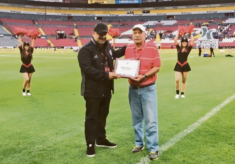 Sin haber sido un futbolista profesional, Rafael Almaraz Hernández es una leyenda del futbol tapatío. Su inconfundible voz, considerada por sus registros como barítono, se mantuvo por más de 50 años en la cabina del mítico Estadio Jalisco, escenario en el que pudo relatar los más grandes acontecimientos de la historia del balompié jalisciense. Sobrio, reflexivo y con una memoria fotográfica, el locutor nos recibe en su casa para desempolvar los recuerdos de su trayectoria en los medios de comunicación. Un breve repaso de sus años en la radio, su apasionada afición por los rojinegros del Atlas y por supuesto, el entrañable lazo con el Estadio Jalisco.- ¿Está retirado de los micrófonos?- Totalmente. Desde que me retiré a finales del 2018, nada más fui invitado a la Semifinal del Atlas contra Pumas en el Apertura 2021 y di las alineaciones. Y después se grabó un documental de Benjamín Galindo, me hablaron para que participara y me invitaron al Estadio Jalisco y me hicieron una entrevista. Esas son las únicas dos veces que me han invitado desde que me retiré. - ¿Dónde ha conseguido más alegrías? ¿En la radio o en el futbol?- Son diferentes completamente, pero yo creo que igual. Por ejemplo, si estamos hablando de futbol, pues en ese momento de futbol. Si me invitas a pasar un programa de radio o voy a la radio, pues la radio. En ambos casos nunca llegué tarde y disfruté plenamente de las dos. - ¿Siempre fue futbolero?- Desde niño, cuando mi padre me llevó de la mano al parque Oro o Martínez Sandoval que era donde se vivía la fiesta del futbol en la década de los 50. Ahí jugaba el Nacional, el Oro, el Atlas y el Guadalajara y una vez me llevaron a un Atlas contra Cuautla. Era un partido de Segunda División y de ahí me enamoré del Atlas, siendo mi padre un ferviente seguidor rojiblanco. Saliendo le dije, “ese equipo me gusta” y como dicen por ahí, hasta el crematorio voy a dejar de ser rojinegro.- En el Estadio Jalisco usted ha visto todo, pero ¿con qué recuerdo se queda de los 50 años en el Monumental?- Disfruté los mundiales del 70, el del 86 y el del 72 de las damas, pero el que más disfruté fue el del 70, porque me tocó narrar los goles de Edson Arantes do Nascimento “El Rey Pelé”, que fue extraordinario junto a esa Selección de Brasil que maravilló al mundo.- ¿También les puso apodos a algunos futbolistas?- Nunca fui mucho de apodos. El único que en realidad puse fue el del “Maestro” Benjamín Galindo, y fíjate que no lo planeé; todo fue espontáneo, porque cuando estoy dando la alineación surgió así. Ese día llegué muy temprano y me metí a la cancha y ya cerca de la portería dije: “¿Cómo le hace Benjamín para meter el balón en los ángulos?” Estando ahí, vi la portería chiquita y confirmé que sólo un maestro con esa habilidad podía anotar goles y meter el balón en los ángulos. Ya para dar las alineaciones llego al número 10, y dije “El Maestro” Benjamín Galindo. - ¿Le agradeció alguna vez por el mote?- Sí, como no. Alguna vez en el Club Guadalajara lo estaban entrevistando y me esperé, ya cuando terminó me acerqué y le dije, “Benja, ¿Te molesta que te digan en el estadio ‘El Maestro’ Benjamín Galindo? ¨ - y me dijo, “No, se oye bien padre. Me gusta mucho”. Y ya le dije, mira soy Rafael Almaraz, la voz del Estadio Jalisco y soy la persona que se atrevió a decirte así. Rafael Almaraz ha sido un enamorado de la radio toda su vida y a lo largo de 60 años las cabinas fueron su pasión.Sin embargo, para él se trata de un medio que ha ido evolucionando desfavorablemente, pues en la ciudad, es un medio que es cada vez menos socorrido.- ¿Escucha la radio actualmente?- Duré 60 años en la radio y en la actualidad ya casi no la escucho. Hay sólo una estación que de repente suelo sintonizar y es “Fórmula Melódica”, pero como yo conozco la programación a veces digo “esa canción yo no la programaría” y me pongo a criticar y mejor la apago. - ¿Ha querido regresar a una cabina? - Sí me gustaría, aunque ya tengo cinco años de retirado y se va desvaneciendo ese deseo. Y pasa algo que parece imposible de explicar: del 99 por ciento de los sueños que tengo estoy en cabina, programando, anunciando o conduciendo. Imagínate, soñar todos los días que estoy en una cabina de radio. - ¿Dónde quedó esa radio que usted conoció y en la que desarrolló su carrera?- Ya no hay. Ya no existe la radio. Era hermosa la que yo conocí allá por 1959. En aquellos tiempos se escuchaba mucho (entona) “Aquí, La voz de Guadalajara”, que era HK y luego me fui a trabajar a Canal 58 y hoy ya está desaparecida. Esa estación era la única que transmitía futbol y que tuvo a las mejores voces deportivas, entre ellos a Susano Santos Flores, pero eran muchas voces reconocidas. Hoy escuchas a cada personaje que de plano dices, ¿qué es eso? ¡Dios mío! Ya se acabaron la radio. - En su momento no cualquiera podía ser locutor de una estación. ¿Usted contaba con licencia?- Sí, y fue uno de los momentos más inolvidables. En 1967 ya era la voz del Estadio Jalisco, pero me propuse ser locutor de radio porque era lo que me gustaba. Entonces me lancé a la Ciudad de México y llegué a la Secretaría de Educación Pública, al departamento audiovisual y solicité que se me aplicara el examen para obtener la licencia de locutor, con la cual sólo te daban empleo en las estaciones de radio. Me llegó un telegrama para que me presentara y fui. Pasé el examen escrito y luego el oral y me aprobaron para darme mi licencia con el número 603 y ya estando en México dije: “ya soy locutor”. En sus poco más de cinco décadas como voz del Estadio Jalisco, Rafael Almaraz cuenta con un sinfín de anécdotas en torno al futbol, pero una que lo dejó marcado en sus últimos años en la cabina del Monumental de la Calzada Independencia, fue cuando un ídolo cayó de su pedestal- ¿Alguna vez le re