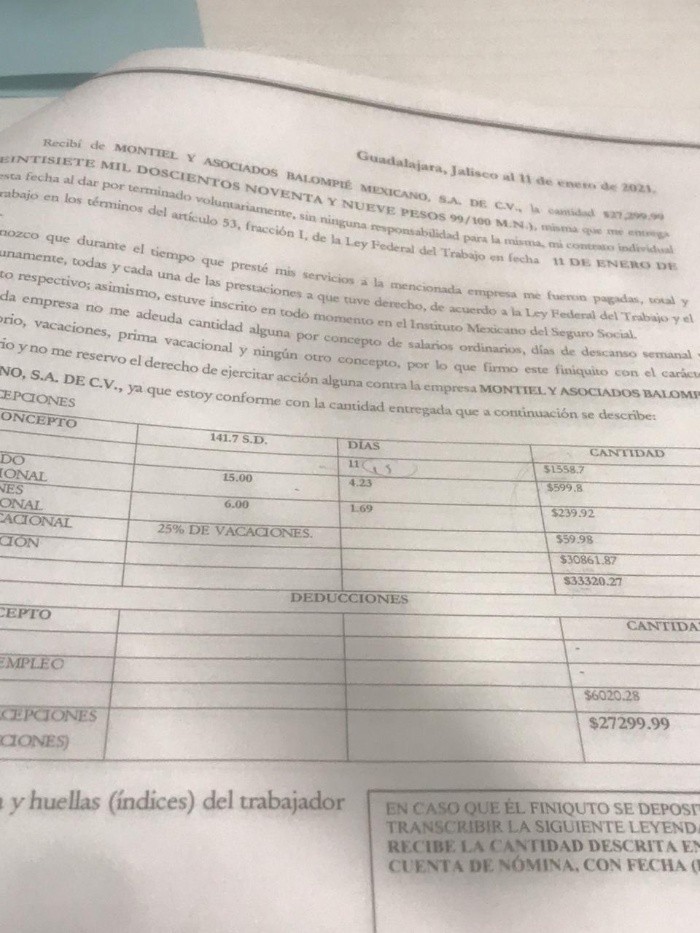 Quienes creyeron en el proyecto de la Liga de Balompié Mexicano y prestaron sus servicios bajo contrato en diferentes áreas, ahora en su gran mayoría se han ido por el tema legal en busca de que les paguen adeudos que arrastran por meses y van directamente contra Montiel y Asociados Balompié Mexicano S.A de C.V.Los involucrados intentaron por todos los medios que les pagaran, atendieron en algún tiempo un acuerdo que les redactaron, incluso pusieron cantidades que recibirían y a esta fecha, la empresa Montiel y Asociados Balompié Mexicano, ha incumplido en sus promesas de pago.Antes les tomaban las llamadas quienes resolverían, pero conforme pasó el tiempo ya ni eso, motivo por el cual se han ido por el tema legal, entendiendo que no hay otra forma de que les paguen sueldos y prestaciones que les dijeron saldarían.En la desesperación por lograr un acuerdo, les entregaron un acuerdo en donde les estipularon el monto que recibiría cada quien, pero nadie firmó en espera de que cumplieran en las fechas pactadas, ya que entraría dinero fresco, según decían, antes de reactivar el torneo que por cierto, sigue sin fecha hasta hoy.En su momento Víctor Montiel, una de las cabezas que quedan de este proyecto, se acercó a un asesor para crear un outsourcing de nombre José Hernández, quien hasta la fecha funge como asesor de Montiel (también es gerente de marketing de la Liga) y registraron a los trabajadores vía el Corporativo JEALT.La Liga no tiene fecha de regreso, equipos les han indicado que no continuarán porque el proyecto no es viable, al estar pidiendo quienes están al frente junto al presidente Carlos Briones, de nueva cuenta una cantidad importante para reactivarla.Ahora mismo son alrededor de 20 personas las que esperan sus pagos. AJ