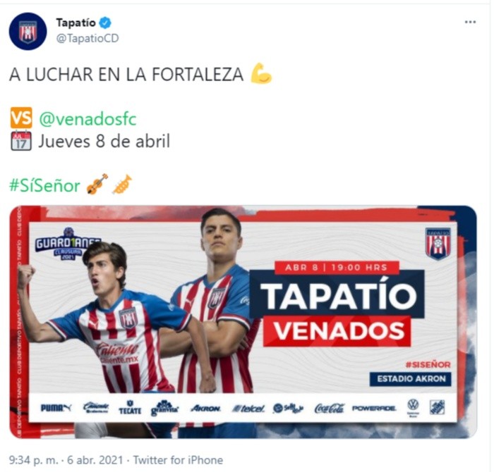 Con el objetivo de regresar a la senda de la victoria para mejorar su posición de cara a la Repesca de la Liga de Expansión MX, el equipo del Tapatío tratará de hacer valer su condición de local el día de mañana cuando se enfrente a Venados de Yucatán en el Estadio Akron en punto de las 19:00 horas, como parte de la Jornada 14 del Torneo Guard1anes 2021.Tapatío suma 22 puntos en el torneo y ya aseguró matemáticamente su pase al repechaje tras los resultados que se han dado en el arranque de la Jornada 14. Sin embargo, los dirigidos por Alberto Coyote regresan a casa con el compromiso de ir por la victoria tras haber sufrido par de derrotas en sus últimos partidos.El rival no será nada sencillo para los tapatíos, pues además de que Venados sólo ha perdido uno de sus seis encuentros fuera de casa, los yucatecos llegan urgidos de puntos y buscarán la victoria para amarrar su pase a la Repesca en la penúltima jornada de la fase regular.En su único antecedente en la Liga de Expansión MX, Tapatío y Venados se enfrentaron en el torneo anterior donde igualaron sin goles en el duelo de la Jornada 2. OF