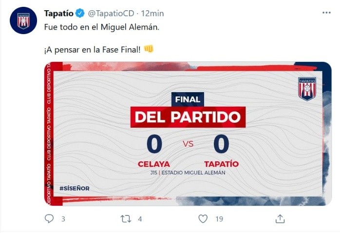 Terminó el torneo regular para Celaya y Tapatío con empate 0-0. El cotejo tuvo muy pocas acciones de gol, siendo el local el más insistente porque quería terminar con 30 unidades, lo cual no se pudo y los jaliscienses, que tuvieron una sola clara con Ronaldo Cisneros, parecieron conformarse con la repartición de unidades.El partido estuvo cerrado, peleado en todos los sectores del terreno de juego y con pocas opciones de gol en ambos arcos. Todavía hasta el minuto 70, los dos conjuntos parecían cómodos con el empate 0-0 y faltó magia de ambos para abrir el marcador.Al 82’, Sergio Vergara estuvo cerca de abrir el marcador, cuando sacó un disparo apenas entrando al área, pero el arquero José Rangel estuvo atento para enfriar el esférico que llevaba lumbre, mucha potencia.Celaya con este resultado se amarró con 28 unidades como el segundo lugar general, declarándose listo para las eliminatorias que se vienen en cuartos de final, en busca de meterse hasta el segundo objetivo trazado, la final, porque el primero lo han conseguido al meterse a instancias definitivas.Tapatío por su parte cerró con 24 puntos, logrando el primer objetivo de meterse a la disputa por el título y el segundo está en ellos lograrlo: meterse a la gran final de la Liga de Expansión. El torneo pasado los dirigidos por Alberto Coyote, no entraron a Liguilla.JM