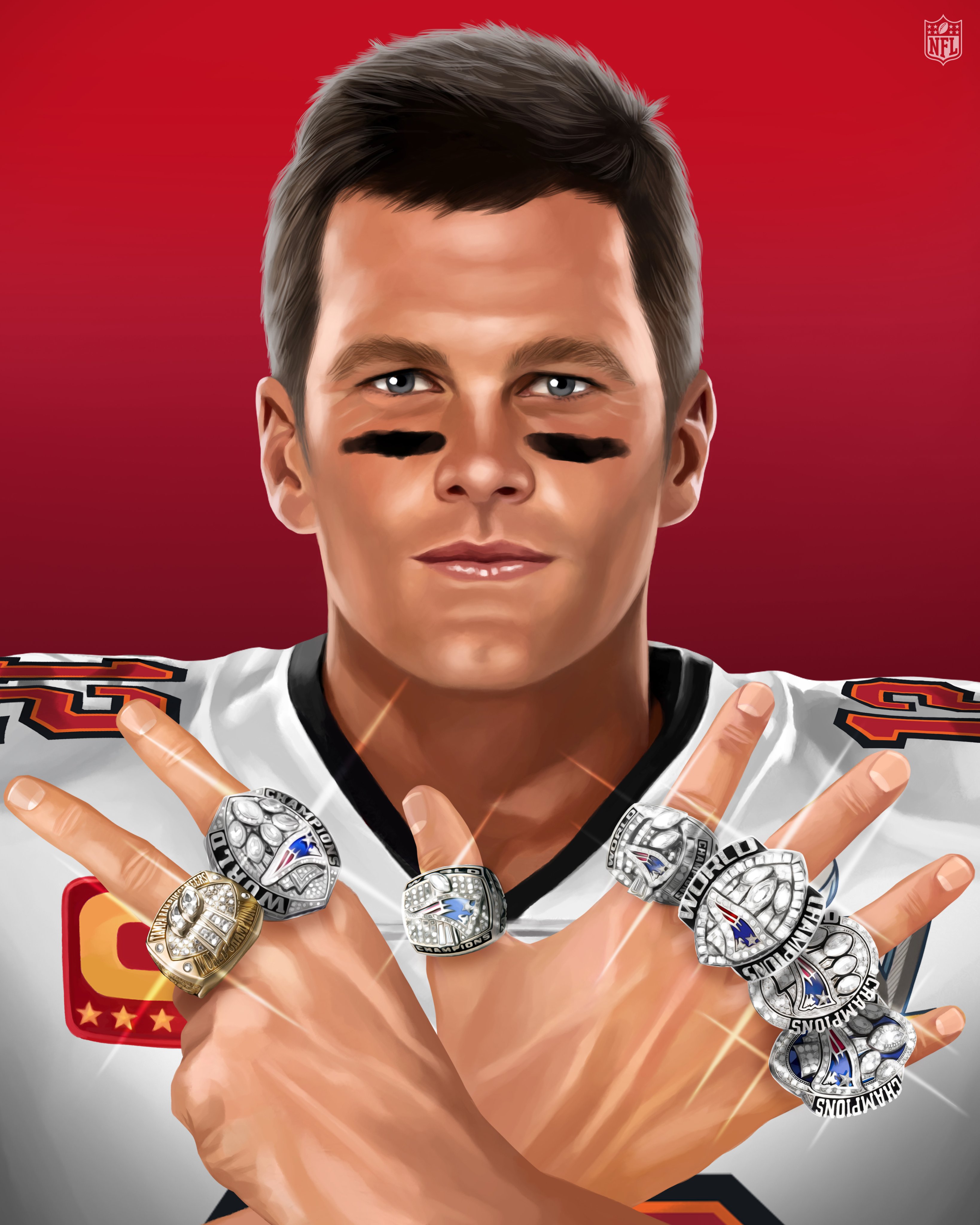 A inicios del 2021, un 7 de febrero, Tom Brady volvió a disputar un Super Bowl, el décimo en su carrera, pero apenas el primero en el que no representaría a los New England Patriots ni sería dirigido desde el banquillo por Bill Belichick. El legendario Quarterback, enfundado en la elástica de Tampa Bay Buccaneers, se enfrentó en el Super Bowl LV ante Kansas City Chiefs, quienes llegaban como vigentes campeones y tenían consigo al flamante QB Patrick Mahomes. Tampa Bay fue muy superior de principio a fin y doblegaron por 31-9 a Kansas City en una gran actuación de Tom Brady, quien sumo su séptimo anillo ante un Patrick Mahomes que lo intentó de todas las maneras posibles, pero su equipo simplemente no estuvo a la altura. Brady lanzó un par de pases de touchdown a su viejo amigo Rob Gronkowski y otro a su camarada Antonio Brown para sentenciar el histórico Super Bowl 55 en casa de Tampa Bay.Con 43 años, Tom Brady rompió su propio récord del jugador más longevo que se consagra campeón del Super Bowl y de paso emuló a Peyton Manning como los Quarterbacks que se han proclamado campeones de la NFL con múltiples franquicias.JL
