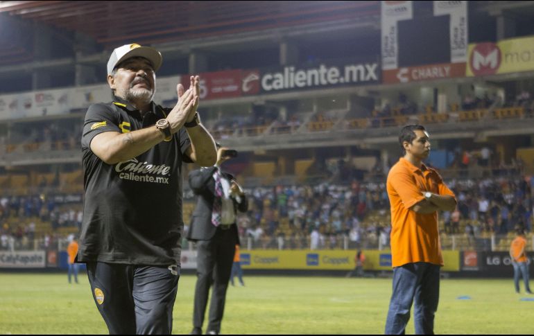 El ecuatoriano Vinicio Angulo convirtió un par de goles para darle este sábado a los Dorados de Sinaloa de Diego Armando Maradona una victoria por 2-3 en casa de los Mineros de Zacatecas en la Liga de Ascenso del fútbol mexicano.En la duodécima jornada del campeonato Angulo (minutos 18 y 68) y Jesús Escoboza (46') anotaron por los Dorados de Maradona que salió al banquillo con una muleta, ya que sufre de una artrosis severa, mientras Guillermo Martínez (51') y Roberto Nurse (89') convirtieron por los Mineros.Los Dorados salieron en busca de la puerta contraria, pero fue el equipo de casa el primero en crear una situación de peligro con una llegada de Simón Almeida, quien pisó el área y fue derribado en una acción en la que hubo un reclamo de penalti no validado por el árbitro.En el 18' Angulo aceptó un servicio de Julio Navas y remató de cabeza para darle a los Dorados una ventaja de 0-1.El equipo de Zacatecas adelantó líneas. En el 35' Nurse llegó con peligro al área rival y en el 36' Josué Mercado remató de cabeza, pero fueron los Dorados los que en el 46' ampliaron la ventaja con un golpe de zurda de Escoboza en una jugada individual.Para la segunda mitad Guillermo Martínez hizo su sexto gol del campeonato para acercar a los Dorados con un disparo de cabeza en un tiro de esquina en el que el portero Gaspar Servio se quedó movido.Los de casa se fueron adelante por el empate y en el 61 estuvieron cerca de conseguirlo con cuatro remates consecutivos, dos atajados por el portero y uno polémico en el que los Mineros reclamaron una mano en el área no ratificada.Dorados mantuvo el orden y esperó a que se abrieran espacios. En el 68 Angulo se hizo de una pelota y de derecha decidió el encuentro, lo cual provocó la explosión de Maradona que si bien estuvo casi todo el tiempo sentado por su padecimiento físico, sí gritó, hizo gestos y reclamó como siempre.En el 81 el defensa Raúl Sandoval hizo una entrada brusca y se llevó la amarilla en otra decisión que incomodó a los de casa que pidieron expulsión y en el 89 hubo una falta en el área, bien cobrada por Nurse para poner el segundo gol.Mineros se fue con todo por el empate, Dorados aguantó con orden y sumó su cuarta victoria en cinco partidos desde la llegada de Maradona que ya puso al equipo en el séptimo lugar con cuatro triunfos, tres empates, cuatro derrotas y 15 puntos. Los Mineros siguieron en el tercer escaño.En su próximo encuentro, el próximo sábado, los Dorados recibirán al Tampico Madero, penúltimo de la clasificación. RR