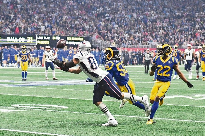 En el Super Bowl que rompió con toda lógica, lo más coherente de todo el encuentro terminó por ser el resultado final.Y es que es de lo más común en la NFL moderna ver a los Patriots de Nueva Inglaterra y a la dupla Bill Belichick-Tom Brady guiar al equipo a una victoria en el juego grande, ahora ya por sexta ocasión al derrotar 13-3 a los Rams de Los Ángeles en Atlanta, y así igualar a los Steelers de Pittsburgh como la franquicia más ganadora de Super Bowls.Ahora quizá la estrategia de Belichick tuvo más peso en el resultado final que lo que Brady hizo en todo el encuentro.El plan de juego del entrenador en jefe de los Patriots logró neutralizar al de su contraparte, Sean McVay, pues la defensiva de los Patriots pudo secar a una de las ofensivas más explosivas de la Liga.Nueva Inglaterra le permitió 260 yardas totales y sólo tres puntos a un equipo que en la temporada regular promedió 421.1 yardas y 32.9 puntos por encuentro, forzándolos a despejar en nueve de sus primeras 10 posesiones.Sin embargo, ya sea la magia o el colmillo que los Patriots le invierten a este tipo de juegos tuvo más peso que una de las nuevas sensaciones de la Liga.El encuentro en el Mercedes-Benz Stadium estuvo alejado de toda expectativa y con aciertos defensivos por ambos lados, al grado de que este terminó por ser el Super Bowl con menos puntos combinados con 16, muy atrás de los 21 para los cuales se combinaron los Dolphins de Miami y los Redskins de Washington en el Super Bowl VII.Para Tom Brady la de anoche no fue su mejor actuación en un Super Bowl; de hecho, por primera vez en sus nueve apariciones en esta instancia terminó con más intercepciones que pases de anotación, una contra cero, pero conectó en momentos clave con Julian Edelman -quien terminó como el Más Valioso gracias a sus 141 yardas por recepción- y sobre la mitad del último cuarto con Rob Gronkowski, en la jugada que precedió al acarreo de anotación de dos yardas de Sony Michel.Por su parte, a Jared Goff le pesó el escenario y la inexperiencia. El pasador de los Rams estuvo bajo constante presión y cometió un error capital cuando tuvo la oportunidad de empatar el encuentro al ser interceptado por Stephon Gilmore, que selló el encuentro.Ahora, los Patriots continúan reescribiendo la historia gracias a su victoria 37 en Postemporada, la mayor cantidad de todos los tiempos; el sexto anillo de Brady lo convierte en el jugador más ganador del Super Bowl y la sexta victoria de Belichick en este partido lo iguala con George Halas y Curly Lambeau como el entrenador con más triunfos en un juego por el título de la Liga.Y aunque se les ame o se les odie, los Patriots siguen haciendo del Super Bowl su escenario favorito y su vía para reescribir la historia de la NFL.Abajo 3-0 en el marcador, los Rams tejían su mejor serie ofensiva del juego tras 43 minutos transcurridos en el mismo. En primera y 10 desde la 29 de los Patriots, Jared Goff buscó a Brandin Cooks en la zona de anotación, pero una providencial marca de Jason McCourty evitó la anotación.En todo el encuentro ninguno de los dos equipos llegó hasta la zona roja hasta que transcurrieron 52:30 minutos cuando Tom Brady conectó un pase flotado de 29 yardas con Rob Gronkowski, cuya jugada terminó en la yarda 2 de los Rams, precediendo la anotación de Sony Michel.Tras la anotación de los Patriots, los Rams buscaban responder de inmediato y tejían otra buena serie ofensiva que había recorrido 48 yardas; pero a 27 yardas de anotar, Goff, bajo presión, buscó a Cooks y en el camino se interpuso Stephon Gilmore para interceptar el envío y sellar el encuentro.