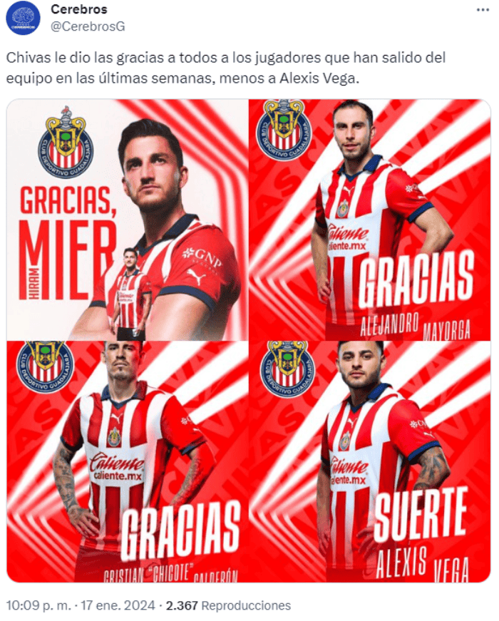 Chivas ha hecho oficial la salida de Alexis Vega del Rebaño y las reacciones no se han hecho esperar en las redes sociales.A pesar de que el ex delantero rojiblanco formó parte del equipo por cinco años, el anuncio de Chivas fue muy breve, cosa que dio lugar para que la afición compartiera memes al respecto.Por su parte, Alexis Vega pasará a las filas del Toluca para continuar con su carrera, luego de tener unos últimos momentos en Chivas que se caracterizaron por la polémica y las indisciplinas.A continuación te presentamos algunos memes que dejaron los aficionados ante la salida de Alexis Vega de las Chivas del Guadalajara. SV