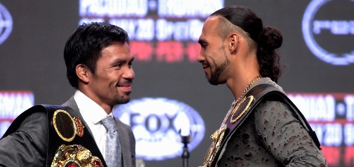 Con la amenaza de que buscarán noquearlo e incluso retirarlo, el boxeador filipino Manny Pacquiao volverá a la actividad este sábado cuando enfrente al estadounidense Keith Thurman en la MGM Grand Arena de Las Vegas.Pacquiao, campeón regular welter de la Asociación Mundial de Boxeo (AMB), se medirá con el supercampeón del organismo en un duelo que será el estelar de la velada.De 40 años y motivado por una pelea de este calibre, el ''Pacman'' (61-7-2, 39 KOs) quiere demostrar que aún tiene la calidad para estelarizar peleas como esta, ante un rival invicto y con hambre de triunfo.Triunfos sobre el argentino Lucas Matthysse y el estadounidense Adrien Broner son con los que llega el asiático a este duelo, más que motivado para destronar a Thurman, sobre todo por las declaraciones de su rival.Es que el norteamericano ha repetido en diversas ocasiones que, además de defender su corona, llega con deseos de noquear al filipino y de incluso empujarlo al retiro, lo que demostrará en ''La ciudad del juego''.Keith, 10 años menor que Pacquiao y con marca profesional de 29-0, 22 por la vía rápida, llega a este pleito luego de imponerse a Josesito López el pasado mes de enero, en el que fue su regreso tras casi dos años sin pelear a causa de una lesión.En la misma velada se presentará el mexicano Luis ''Pantera'' Nery, quien se medirá con el dominicano Juan Carlos Payano, en busca de dar otro paso que lo lleve a la pelea por el título gallo del CMB que busca recuperar.Nery, con récord de 29-0, 23 por la vía del nocaut, tiene en la mente retos importantes como recuperar el cetro y también enfrentar al japonés Naoya Inoue, pero antes tendrá que medirse con Payano (21-2, 9 KOs), quien busca otra pelea de título mundial.También se verán las caras el cubano Yordenis Ugás (23-4, 11 KOs), quien tratará de regresar al camino de la victoria cuando se mida con el estadounidense Omar Figueroa Jr. (28-0-1, 19 KOs), en eliminatoria para disputar el cetro welter del CMB.OF