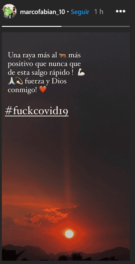 El futbolista, Marco Fabián, anunció a través de sus redes sociales que dio positivo a Covid-19, incluso anticipándose a algún comunicado por parte de su equipo, Juárez FC o de la Liga MX."Una raya más al tigre, más positivo que nunca que de esta salgo rápido", publicó Marco Fabián. Marco Fabián se suma a la larga lista de jugadores del FC Juárez y de la Liga MX en dar positivo al Covid-19 durante el Guard1anes 2020. Hasta el momento ni el equipo ni la Liga han comunicado nada sobre el caso de Marco Fabián. Los Bravos se medirán a Tigres en el Estadio Universitario en la Jornada 15. LS