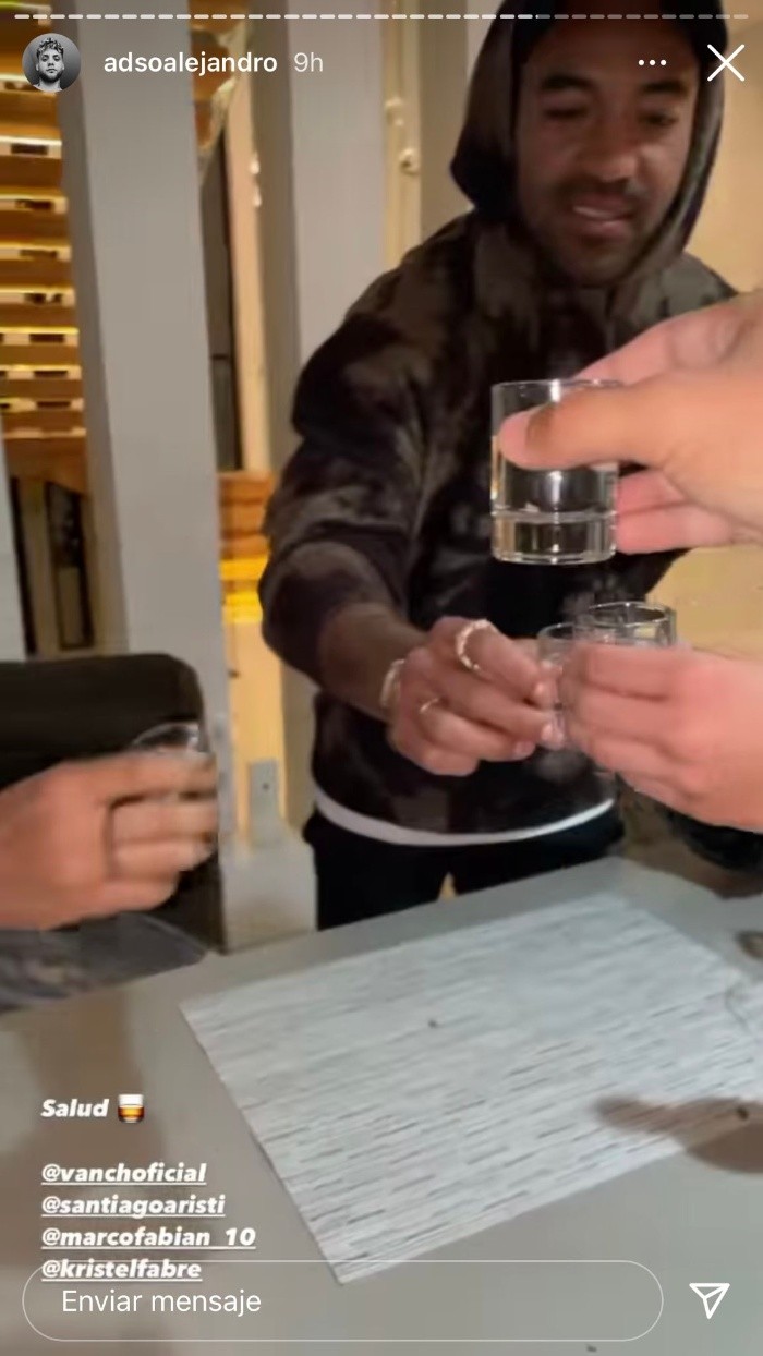 El jugador de Juárez FC, Marco Fabián, es el centro de una nueva polémica al ser evidenciado en una reunión con el DJ venezolano Adso Alejandro.El volante del FC Juárez aparece en las imágenes que el DJ compartió en sus redes sociales, momentos que pasó con bebidas alcohólicas y rompiendo el protocolo sanitario de la Liga MX.Después de las polémicas de Jonathan Rodríguez (Cruz Azul) y Alan Mozo (Pumas), se fortalecieron las medidas para los jugadores y se aplicaron sanciones para aquellos que violen el documento."Si un integrante es sorprendido no respetando el Protocolo Sanitario de la Liga MX en eventos no autorizados por el Club, deberá ser separado del plantel por un periodo de 10 días y se reincorporará presentando ante la Liga una prueba PCR negativa", se lee en el protocolo."El caso será turnado a la Comisión Disciplinaria para su análisis, pudiendo alcanzar una sanción económica de 100 mil pesos".De acuerdo con las redes sociales del futbolista y el cantante, esta reunión ocurrió el miércoles por la noche, a 48 horas del partido entre los Bravos y Pumas.OF