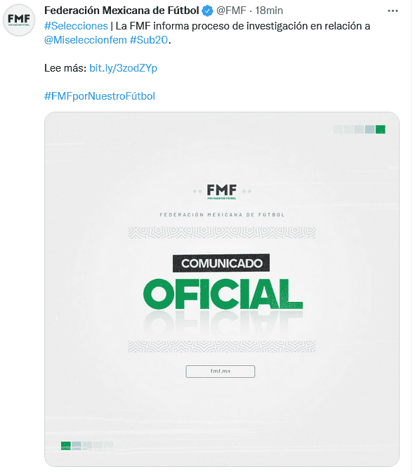 La Federación Mexicana de Futbol (FMF) informó que, luego de que se rumorara sobre la destitución de la entrenadora de la Selección Mexicana Sub-20 femenil, se abrió un procedimiento a la ex futbolista Maribel Domínguez, mientras que su cuerpo técnico queda suspendido temporalmente y ella fue separada del cargo.Ante una solicitud de investigación, sin especificar el motivo, la FMF dice en su comunicado que "inmediatamente se abrió dicho proceso de investigación de acuerdo con los protocolos internos establecidos".También anunciaron que "para apoyar este proceso y garantizar su imparcialidad, temporalmente se ha suspendido al cuerpo técnico de esta selección", a la vez que se anunció que será Ana Galindo quien asuma la responsabilidad durante el proceso.Será del 10 al 28 de agosto cuando se dispute este certamen internacional en Costa Rica, pero México ya no tendrá a Maribel en el banquillo luego de que la cesaran por las acusaciones en su contra.OF