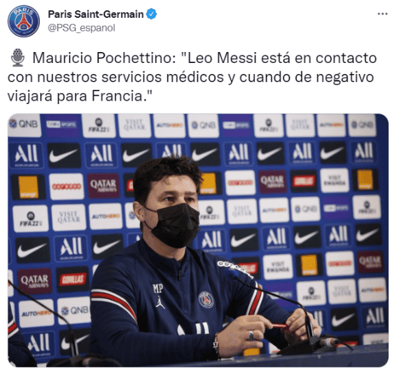 Al parecer, el París Saint-Germain (PSG) no inició nada bien el 2022, pues este domingo confirmó que Leo Messi y otros tres jugados no podrán reintegrarse con el resto del equipo debido a que dieron positivo a COVID-19.El entrenador Mauricio Pochettino dijo durante una conferencia de prensa que Messi está actualmente en Argentina, donde viajó para pasar las fechas navideñas, y se quedará ahí hasta que dé negativo a la prueba de COVID y pueda viajar a Francia."Los cuatro jugadores positivos de COVID-19 son Leo Messi, Juan Bernat, Sergio Rico y Nathan Bitumazala. Todos están respetando actualmente el aislamiento y el protocolo sanitario adaptado", indicó el PSG. El París Saint Germain volvió este fin de semana a los entrenamientos y este lunes a la competición, en los dieciseisavos de final de la Copa de Francia, contra el Vannes, de cuarta categoría. Pochettino explicó que Messi está en contacto constante con los servicios médicos del club y viajará a Francia cuando vuelva a ser diagnosticado negativo. "Llevamos casi dos años con el virus, yo creo que ya sabemos todos lo que necesitamos evitar para ser contagiados y aún así podemos contagiarnos", añadió Pochettino. El entrenador confirmó que en este ambiente de fútbol donde el contacto es inevitable y hay convivencia en los vestuarios hay "mucho más riesgo" de poder contagiarse, dijo en referencia al hecho de que Bernat estuvo el sábado con otros compañeros."Estamos tomando todas las medidas necesarias para tratar de evitar que si un jugador esta contagiado contagie a otro. Hacemos todo lo posible para convivir de la mejor manera y poder seguir jugando al fútbol", resaltó. GC