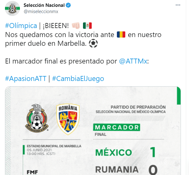 Fue un partido complicado, de pocas llegadas, sin embargo, la Selección Mexicana Sub-23 comandada por Jaime Lozano logró vencer 1-0 a Rumania en partido de preparación rumbo a Tokio 2020. El primer lapso careció de emociones, pues ninguna de las dos escuadras tuvo una oportunidad clara frente al arco rival y el encuentro estuvo muy trabado en el mediocampo. Ya para el complemento, el Tri salió con mucha iniciativa, incluso al minuto 48 Fernando Beltrán estuvo cerca de concretar un golazo al conectar un tiro desde las afueras del área que pegó en el travesaño. Al minuto 70 cuando Jaime Lozano se animó a hacer cambios, ingresando al campo a elementos como Alan Cervantes, Alejandro Zendejas y Jesús Ricardo Angulo. Fue precisamente el atacante de Chivas quien se encargó de adelantar al Tri con un soberbio disparo dentro del área desde el costado izquierdo al minuto 75.México se encargó de defender la ventaja y logró el triunfo en estos duelos de preparación que tendrá rumbo a los Juegos Olímpicos de Tokio 2020.El próximo encuentro de México será el martes 8 de junio ante el combinado de Arabia Saudita. AJ