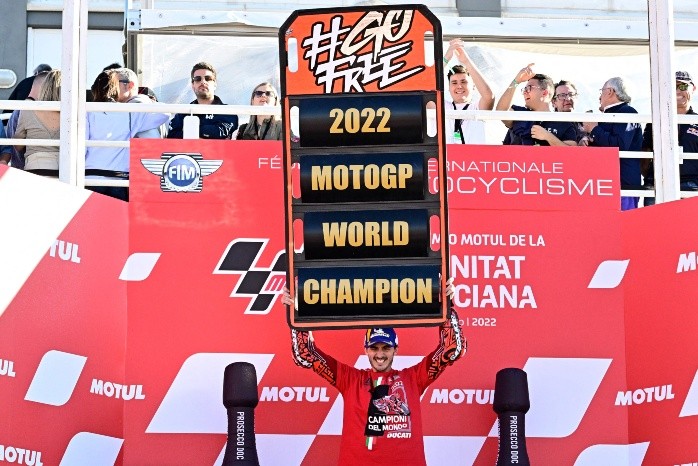 Francesco Bagnaia (Ducati Lenovo Team) ya es historia viva del motociclismo italiano. Un año después del emotivo adiós de Valentino Rossi, 'Pecco' tomó el testigo de su mentor este domingo en Valencia al convertirse en nuevo rey de MotoGP™ para culminar con éxito su histórica remontada. Pese a la presión a la que fue sometido por Fabio Quartararo (Monster Energy Yamaha MotoGP™), el '63' hizo lo que tenía que hacer en el Circuit Ricardo Tormo al finalizar 9º en una carrera conquistada por Alex Rins (Team Suzuki Ecstar) con la que siguió los pasos del título conquistado por Casey Stoner con Ducati en 2007. Además, su triunfo permite que el motociclismo italiano vuelva a saborear un exitoso binomio piloto-moto italiano en la categoría reina por primera vez desde el título conquistado por Giacomo Agostini en 1972 con MV Agusta. Sin duda, una jornada para la historia del Campeonato del Mundo.Más de 95 mil personas poblaban las gradas del trazado valenciano y más de 170 mil habían desfilado por él durante un fin de semana para el recuerdo. #TheDecider entraba en su recta decisiva y Bagnaia debía templar los nervios en el momento de la verdad. El italiano partía 8º en parrilla, con Quartararo 4º, y, muy pronto, ambos se verían las caras sobre el asfalto. Rins se había encargado de sorprender al tomar la cabeza de carrera en la primera curva partiendo 5º, y 'Pecco' consiguió colocarse 6º rueda con rueda de 'El Diablo'. En la segunda vuelta, saltarían las chispas con un toque entre ambos con el que el italiano perdería una pieza aerodinámica de su GP22. Un lance de carrera para entrar en calor.Rins, Martín, Marc Márquez (Repsol Honda Team) y Jack Miller (Ducati Lenovo Team) conseguirían obtener una ligera ventaja de inicio que obligaría a Quartararo a pasar al ataque. Sin tiempo que perder, el francés daría caza a Bagnaia en la cuarta vuelta al sentir el aliento de Binder. Gran contraste con otro de los pesos pesados del Campeonato, Aleix Espargaró (Aprilia Racing), obligado a abandonar para acabar fuera del podio de la general. A segundo y medio de Miller, Quartararo pondría sus miras en el podio de inmediato. Pese a que las caídas se sucederían sin cesar, el talentoso piloto de Niza echaría el resto con el paso de las vueltas.Marc Márquez se vería apeado de la lucha antes de lo esperado. Tras asaltar las posiciones de podio al superar a Miller, el australiano le devolvería la moneda y en su intento por seguir el ritmo de los más rápidos, el de Cervera se iría al suelo en la curva 8 de la décima vuelta. Una circunstancia que beneficiaba a Bagnaia, tras haber sido superado por Binder una vuelta antes. Llegaba el momento de ver cómo respondía el italiano ante el empuje de sus rivales. Tocaba ser inteligente.Poco después, 'Pecco' también sería superado por Joan Mir (Team Suzuki Ecstar). Se cumplía la mitad de la carrera y la amenaza de Miguel Oliveira (Red Bull KTM Factory Racing) y Luca Marini (Mooney VR46 Racing Team) cobraría cuerpo paulatinamente. Para estar tranquilo, Bagnaia debía salvaguardar la 14ª posición. Todavía tenía margen, pero sus rivales comenzaban a apretar. Por delante, Quartararo se colocaba a un segundo del Top 3 para acabar de animar la lucha. Varios giros después, el margen se reduciría a medio segundo. Ya estaba ahí. Faltaban 11 vueltas y Bagnaia también sería superado por Oliveira.Pese a su ejercicio de ambición, 'El Diablo' vería como su intento comenzaba a complicarse. A falta de 10 giros sería superado por un ciclón llamado Binder, al tiempo que Bagnaia también sería superado por Marini. Varios giros después, el piloto de Turín también sería superado por su futuro compañero, Enea Bastianini (Gresini Racing MotoGP™). Quedaban 6 vueltas y la calculadora de 'Pecco' echaba humo. Había cedido varias posiciones, pero la opción de triunfo de Quartararo era prácticamente una quimera. Un giro después, Binder se colocaba en posición de podio al cazar a Miller, que se iría al suelo en la curva 11. Quartararo pasaba a ser 4º, pero a dos segundos de un Rins lanzado por la victoria.Las últimas vueltas depararían el ataque final de Binder. Confirmado como el gran tapado de la carrera, el sudafricano superaría a Martín en la penúltima vuelta, antes de estrechar el cerco al máximo sobre Rins. El '42' pasaría por penúltima vez por meta con 6 décimas de ventaja. Serían suficientes. En su despedida de Suzuki, el catalán resistiría para firmar su quinta victoria en clase reina -segunda del año tras Australia- por delante de Binder y Martín, mientras que Quartararo finalizaría 4º pese a su absoluta entrega. Más atrás, a 7 segundos del ganador, Oliveira cerraría el Top 5 por delante de Mir y Marini, con Bastianini 8º y Bagnaia amarrando la corona mundial al finalizar 9º por delante de un Franco Morbidelli (Monster Energy Yamaha MotoGP™) que le había encimado en las últimas vueltas.En una carrera de resistencia con múltiples caídas y abandonos, que resolvería los últimos títulos en juego, los últimos puntos de la temporada se los repartirían Marco Bezzecchi (Mooney VR46 Racing Team), la dupla del Tech3 KTM Factory Racing -Raúl Fernández y Remy Gadner-, Takaaki Nakagami (LCR Honda IDEMITSU) y Fabio Di Giannantonio (Gresini Racing MotoGP™). Tras ver la bandera a cuadros, Bagnaia y Ducati daban rienda suelta a la euforia tras saborear un título muy perseguido durante años.Hoy termina la temporada! , hasta el próximo año.