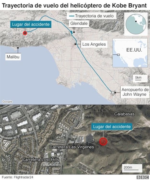 La muerte del ícono del baloncesto Kobe Bryant y de su hija Gianna, de 13 años de edad, impactó al mundo. Pero a bordo del helicóptero que se estrelló el domingo viajaban siete personas más.Los reportes iniciales del accidente informaban de cinco víctimas fatales, pero en las horas siguientes las autoridades confirmaron que se trataba de nueve y que todas habían fallecido.Sin embargo, se negaron a revelar sus identidades a la espera de que los forenses concluyan su trabajo, una tarea complicada que se espera dure varios días.Las autoridades del condado de Los Ángeles informaron el lunes que, de momento, recuperaron tres cuerpos que serán examinados e identificados.Los nombres de las víctimas se han conocido a raíz de comunicados de familiares y allegados que ha difundido la prensa y de publicaciones en homenaje en las redes sociales.El helicóptero viajaba desde el condado de Orange -donde Bryant vivía con su esposa y sus cuatro hijas- hasta la ciudad de Thousand Oaks para asistir a un partido en el que iba a jugar Gianna en la academia Mamba Sports, fundada por Bryant.Las autoridades investigan las causas del accidente, pero reportes meteorológicos destacaron la niebla y baja visibilidad existente en la zona en el momento del siniestro.El entrenador de béisbol John Altobelli y su familia.Altobelli, de 56 años, trabajaba como entrenador de béisbol de 56 años en la escuela comunitaria Orange Coast College (OCC), según un comunicado del centro educativo.En el helicóptero también viajaban su hija y esposa, Alyssa y Keri respectivamente.Alyssa y Gianna eran compañeras de equipo en Mamba Sports, una academia deportiva fundada por Bryant."Era algo que John (Altobelli) hacía con frecuencia, volar junto a Kobe para asistir a los partidos con su hija", le dijo a CNN Ron La Ruffa, entrenador de OCC.El director del departamento deportivo de la institución, Jason Kehler, expresó en un comunicado que Altobelli "personificaba lo que significa ser un entrenador de béisbol".Kehler destacó "la pasión que (Altobelli) le imprimía al juego, pero, más importante aun, a sus deportistas... los trataba como a su familia".El OCC anunció el lunes la creación de un fondo para recaudar dinero en memoria de la familia.Mauser, de 38 años, era entrenadora de baloncesto femenino en una escuela primaria de la ciudad californiana de Newport Beach, tal y como confirmó su marido, el músico Matt Mauser, en entrevistas con medios locales.El mismo día del siniestro, Mauser publicó en su muro de Facebook: "Mis hijos y yo estamos devastados. Perdimos a nuestra hermosa esposa y madre en un accidente de helicóptero. Por favor respeten nuestra privacidad. Gracias por sus buenos deseos, significan mucho".En una entrevista posterior, el músico confirmó que su esposa trabajaba como entrenadora asistente en el equipo de la Academia Mamba en el que jugaba Gianna Bryant."(Kobe) no escogió a Christina por cualquier razón", dijo el lunes en una entrevista televisiva con el Today Show. "Era extraordinaria. Increíblemente ingeniosa, divertida... divertida como nadie que hayas conocido"."Tengo tres niños pequeños y estoy tratando de descifrar cómo llevar la vida con tres niños y sin madre", añadió.La alcaldesa de la localidad donde residía la entrenadora envió sus condolencias a la familia en un tuit."Esta tragedia devastadora empeora cada vez más", escribió Katrina Foley, alcaldesa de la ciudad de Costa Mesa, en el condado de Orange.Medios estadounidenses dieron a conocer otros dos nombres, los de Sarah y Payton Chester, madre e hija y residentes del condado de Orange."Mientras el mundo llora la pérdida de un atleta dinámico y humano, yo lloro la de dos personas igual de importantes", escribió en Facebook Todd Schmidt, director de la escuela primaria a la que asistió Payton Chester.Sarah Payton tenía otros dos hijos mayores, de acuerdo con un reporte de la revista People.Uno de ellos honró la memoria de su madre y su hermana de 13 años en su cuenta de Instagram, según reportaron medios locales: "Descansen en paz, la madre y hermana más maravillosas".Ara Zobayan también ha sido reseñado en los medios como el piloto del helicóptero, de acuerdo con mensajes de homenaje que sus allegados han publicado en línea.De acuerdo al diario TheNew York Times, Zobayan era un piloto comercial de helicóptero e instructor certificado de vuelo, como muestra su expediente en la Administración Federal de Aviación (FAA, por sus siglas en inglés) que citó el diario.Darren Kemp, un alumno de Zobayan, le dijo al diario Los Angeles Times que este no solo era el piloto privado de Bryant sino que el deportista "no dejaba que nadie más pilotara para él".Kemp dijo que el piloto era un maestro "dedicado" que deseaba el éxito de sus estudiantes.Un conjunto de audios entre los controladores aéreos y el piloto analizados por la prensa local mostraron que este recibió una autorización especial para volar en un clima de niebla y condiciones no óptimas.Volar en helicóptero era una rutina habitual para Bryant incluso desde su etapa de jugador en activo. Por ejemplo, lo utilizaba para acudir a cada partido que disputaba en el estadio Staples Center con Los Angeles Lakers.Según afirmó en varios medios, el motivo para elegir este medio de transporte no era otro que esquivar las horas de tráfico por carretera y reducir así el impacto que suponía para sus lesiones físicas estar varias horas sentado en un automóvil. ***Ahora puedes recibir notificaciones de BBC News Mundo. Descarga la nueva versión de nuestra app y actívalas para no perderte nuestro mejor contenido.¿Ya conoces nuestro canal de YouTube? ¡Suscríbete!