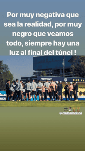 El ambiente en el América no parece ser el mejor, pero al menos hay ánimo para mejorar la situación del equipo.El delantero azulcrema "Nico" Castillo publicó un mensaje en su cuenta de Instagram en el que deja entrever la desilusión del plantel por la derrota de ayer ante Necaxa."Por muy negativa que sea la realidad, por muy negro que veamos todo, siempre hay una luz al final del túnel", publicó el jugador en el mensaje que acompaña una fotografía del plantel azulcrema reunido, aparentemente conversando en el campo de juego.Las Águilas cayeron ayer por por 3-1 ante Rayos en partido de la jornada 1 que había sido pospuesto.La derrota dejó al equipo capitalino en noveno lugar con 13 puntos, un escalón debajo de la zona que da acceso a la Liguilla, la fase final del futbol mexicano.Los azulcremas deben dejar atrás la derrota cuanto antes, ya que les espera una prueba ardua: dos Clásicos nacionales ante Chivas en apenas tres días, el 13 de marzo en Copa y el 16 en Liga. RR