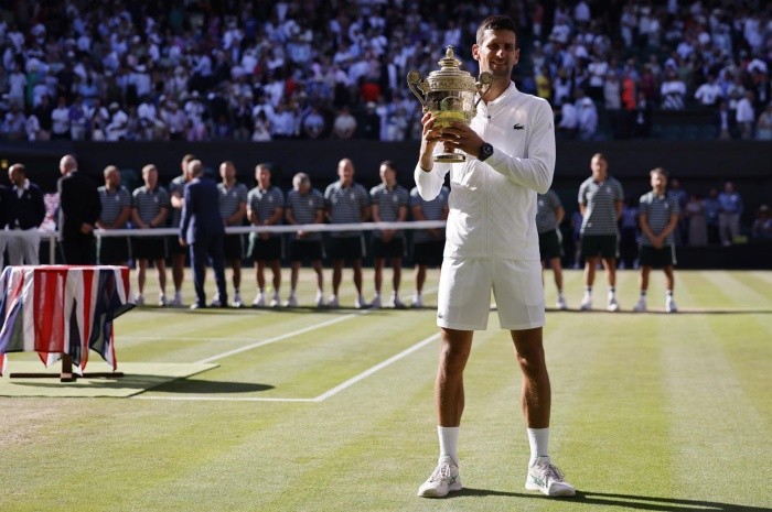 El serbio Novak Djokovic fulminó las opciones de Nick Kyrgios (4-6, 6-3, 6-4 y 7-6 (3)) y se coronó con su séptimo Wimbledon, igualando los registros de William Renshaw y Pete Sampras.Djokovic ganó su partido número 27 de forma consecutiva en Wimbledon para elevar su cuenta de Grand Slams a 21, a uno de Rafael Nadal y uno por encima de Roger Federer.El serbio, que no se dejó enredar por un Kyrgios al que le duró el tenis set y medio, iguala los registros en el All England Club de William Renshaw y Pete Sampras, con siete títulos, y se queda a uno de Federer y a dos de Martina Navratilova.Sin una final de brillo, sin necesitar su mejor tenis en ninguna etapa del torneo, Djokovic, gran favorito hace catorce días, consolida su liderazgo en la superficie y suma 27 encuentros sin perder en Wimbledon, más de cinco años sin probar la derrota. El champán, los gorros para protegerse del sol, los príncipes en la grada... Todo estaba preparado para una sesión de cohetes en la Catedral del tenis, una exhibición entre el jugador que todo el mundo esperaba que estuviera en este partido y la gran sorpresa del torneo. Kyrgios, con su andar pasivo, impertérrito ante el partido más importante de su vida. "Dale a un hombre una máscara y te mostrará su verdadero ser", tiene escrito el australiano en una pierna. Su máscara, la de finalista de Wimbledon, su ser, el del tenista que apareció en el primer set del partido por el título. Un Kyrgios tranquilo, sin emociones, con un servicio en el que los primeros volaban a 219 kilómetros por hora y los segundos a 125. Un tenista capaz de apresar en seis juegos saques con cuchara, dejadas, voleas, golpes por debajo de las piernas y cortados a ras de suelo. Durante media hora, el mejor Kyrgios de su carrera estuvo sobre el tapete de Wimbledon. Le valió para superar a Djokovic y ganar un set.La incógnita era si podría mantener el nivel y, sobre todo, si Djokovic no elevaría el suyo. La respuesta era sencilla y no tardó en llegar. A Kyrgios se le borró el repertorio, dejó de hacer todo lo que hace bien, es decir, lo más inesperado, y entró en el juego de intercambios de Djokovic, en el que no tenía nada que ganar. Perdió terreno, convirtió el encuentro en algo anodino y comenzó una batalla consigo mismo y con su banquillo. Empezaron los diálogos internos, los gritos a su palco y las miradas incómodas del príncipe Guillermo y su hijo George, espectadores de lujo del volcán a punto de explotar. Djokovic, sin un nivel acorde a su tenis, neutralizó la sorpresa y salvó cuatro bolas de 'break' cuando sirvió para poner el 1-1 en el marcador. Hasta en siete finales de Grand Slam ha remontado un set en contra. Aquí buscaba la octava. Cuando más igualado estaba el partido, más proclive era Kyrgios a comenzar el espectáculo. Para mediados del tercer set, su cafetera ya estaba a punto de explotar. Le cayó la primera advertencia por maldecir al público al cometer una doble falta, después de un grito de una aficionada entre el primer y el segundo servicio. "Es la que parece que se ha bebido 700 copas", le dijo al juez. Las conversaciones con su gente pasaron a ser también con el árbitro. Su locura se iba extendiendo poco a poco a cada vez más elementos de la pista, focalizando toda la atención y dejando a Djokovic en un segundo plano.Él era el actor protagonista y absorbía todos los papeles de la película. Con 4-4 en el tercero, al australiano se le escapó un 40-0, levantado magistralmente por Djokovic. Pero ninguna cámara apuntaba al serbio; todas estaban con Kyrgios, enfrentado con su banquillo, al que felicitó tras una doble falta y un revés a la red con el que entregó el parcial. Como en el segundo set, cuando desperdició un 0-40, Kyrgios tiraba ahora un 40-0 que le costaba otro parcial y, de alguna forma, el partido. Con 2-1 ya a favor y la final bajo control, Djokovic se fue al baño diez minutos y dejó solo a Kyrgios hablando en su silla. Un monólogo que le sirvió para tranquilizarse, para recuperar su servicio y para estabilizar el encuentro. El cuarto set, sin oportunidades con los servicios, se encaminó al 'tie break'. Una doble falta de Kyrgios, nada más empezar, allanó el camino de Djokovic, que puso el 2-0 con una volea sencilla, pero estrelló una derecha a media pista en la red que devolvió la vida al australiano. Pero él solo se la quitó. Cuatro errores seguidos colocaron el 6-1 a favor de un Djokovic de perfil bajo, que aprovechó su tercer punto de partido y selló su séptimo título en Londres. Se agachó a la hierba y probó su sabor, ese que tan bien conoce ya.El de Belgrado suma 27 victorias consecutivas en Wimbledon, cuatro trofeos seguidos, los mismos que logró Pete Sampras y a uno de los cinco de Federer y Bjorn Borg. Números que le colocan como uno de los mejores de la historia de esta superficie.AC