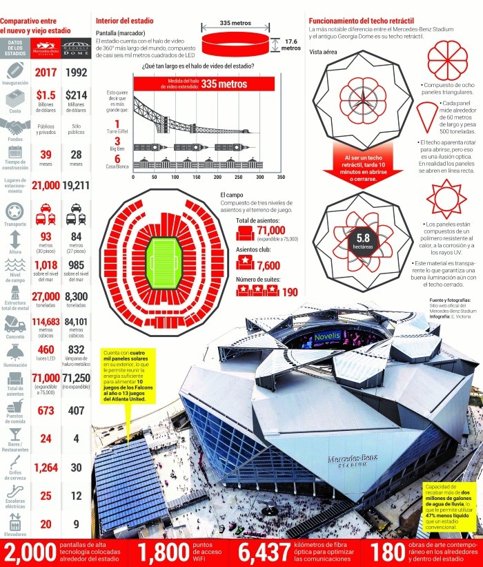 En el corazón de Atlanta, una estructura sobresale sobre todas las demás y no por su altura o por su tamaño, sino por su tecnología, su innovación y el significado que tiene. Se trata del Mercedes-Benz Stadium, el inmueble que esta tarde será observado por millones de personas que estarán disfrutando del Super Bowl LIII.Los administradores del inmueble no tienen duda al momento de decir que éste es el mejor estadio de la NFL. Inaugurado hace dos años, con una capacidad para más de 70 mil aficionados y albergando a dos equipos diferentes -los Falcons de Atlanta en la NFL y el Atlanta United FC de la MLS- pareciera que será apenas hoy cuando se abrirá por primera ocasión y eso es por el magnífico estado en el que se encuentra. Pero esto no es casualidad o suerte: es trabajo, planeación y atención a los detalles.En un evento para la prensa, algunos de los miembros de equipo que se dedica únicamente a la cancha, habló sobre los preparativos. “Tenemos que tener cuidado y supervisar la cancha. Que no esté demasiado dura, por los protocolos de contusión. Que no haya una parte floja. Estamos preparados para todo y en realidad no tenemos ninguna preocupación, estamos listos para lo que sea y gracias al techo, ni siquiera tenemos que rogar al clima que sea bueno con nosotros”.Desde la semana pasada, miles de personas trabajaron y ensayaron cada parte del espectáculo que será el Super Bowl. Al ver este estadio, queda claro que, en la NFL, lo único que no se planea es el marcador final del encuentro.