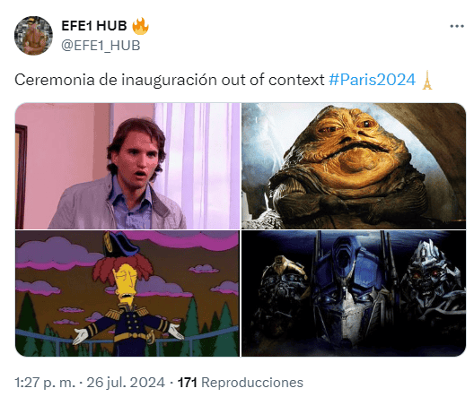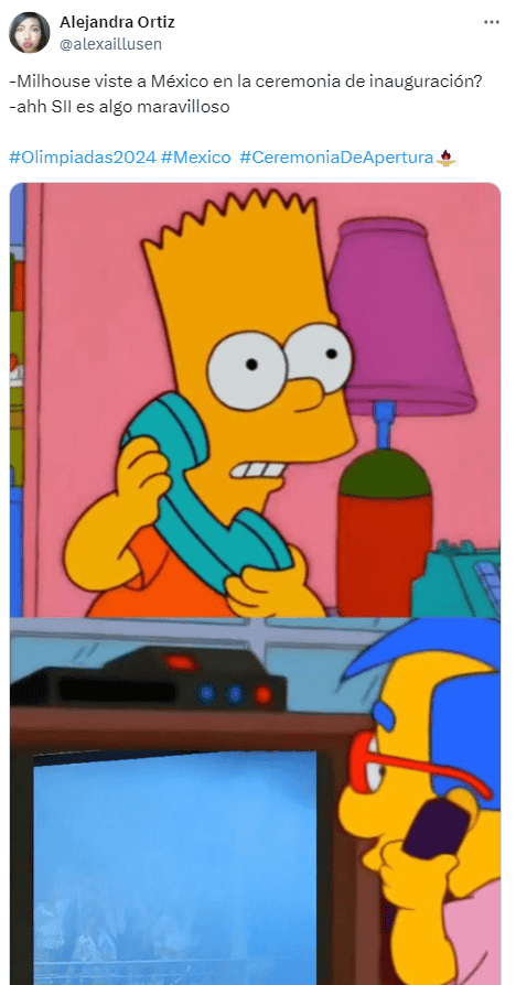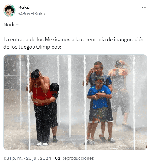 ¡Oh, la la! Este viernes 26 de julio se llevó a cabo la ceremonia de inauguración de los Juegos Olímpicos de París 2024. En un pomposo escenario edificado a las orillas y con un desfile de naciones sobre el río Sena, lo ocurrido en la capital de Francia no dejó indiferente a nadie.Desde comentarios positivos y hasta críticas, los usuarios de redes sociales echaron a volar su imaginación y compartieron los memes más creativos sobre el evento.La queja principal, desde luego, fue la aparición tan breve de la delegación mexicana, ya que al desfilar frente a un chorro de agua, apenas se le pudo ver a los atletas nacionales. *Mantente al día con las noticias, únete a nuestro canal de WhatsApp OF
