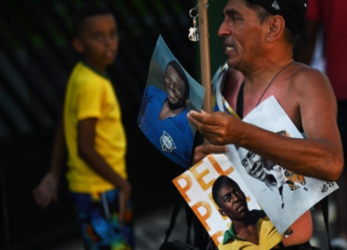 Miles de brasileños, autoridades y exfiguras del fútbol se despedían este lunes de su Rey Pelé, fallecido el jueves a los 82 años, en un solemne velorio en el estadio del Santos, el equipo donde forjó buena parte de su leyenda.Los seguidores, muchos llegados de otras ciudades del gigante latinoamericano, continuaban haciendo fila al caer la noche afuera del estadio Vila Belmiro para acceder al terreno. Allí les esperaba el féretro abierto rodeado de coronas de flores blancas, cubierto con una bandera de Brasil y otra del Santos.Algunos gritaban "¡Pelé, Pelé!" y entonaban cánticos destacando a 'O Rei' por encima del argentino Diego Maradona, su gran rival, ahora también junto a Lionel Messi, por el trono del mejor artista de la pelota.El velorio se desarrolla en una atmósfera ceremoniosa, con pocas muestras de pasión desbordada como las evidenciadas en el de Maradona, en noviembre de 2020 en Buenos Aires.Marcia Cibele Aoki, tercera esposa del exdelantero, fue una de las primeras en acercarse. Vestida de negro y entre lágrimas, pasó la mano sobre la cabeza del astro, con quien se casó en 2016.También hicieron presencia al menos tres -Edinho, Kely y Flavia- de los seis hijos vivos del inolvidable '10', además de exinternacionales brasileños como Paulo Roberto Falcao, Zé Roberto o Mauro Silva.El flamante mandatario brasileño, el izquierdista Luiz Inácio Lula da Silva, visitará en la mañana del martes el recinto deportivo para homenajear a "O Rei" y expresar "solidaridad" con la familia, informó la presidencia. Su investidura el domingo en el Congreso en Brasilia se inició con un minuto de silencio en memoria de Pelé.El presidente y la primera dama, Rosangela "Janja" da Silva, enviaron una corona de flores al velorio, según mostró la prensa local el lunes.El jefe de la FIFA, Gianni Infantino, prometió en las puertas del estadio que la institución homenajeará al 'rey' como se merece."Pediremos a todas las federaciones en el mundo entero, los 211 países, que nombren un estadio en cada país con el nombre de Pelé, porque los jóvenes tienen que saber y recordar quién era", dijo Infantino, que estuvo acompañado del presidente de la Confederación Brasileña de Fútbol, Ednaldo Rodrigues, y de la Conmebol, Alejandro Domínguez.El padre de Neymar, surgido también en el 'Peixe', asistió en nombre de la familia del actual '10' de la 'Seleçao', quien no viajará a Brasil."Pelé inspiró a todas las generaciones", dijo el padre de 'Ney', que en el Mundial de Catar igualó al ídolo como máximo goleador de los pentacampeones (77 goles). Los seguidores se deshacían igualmente en elogios con el exfutbolista que les hizo vibrar como ningún otro mientras esperaban entrar en el estadio."Mi infancia estuvo marcada por lo que Pelé hizo por Brasil, en los partidos de los Mundiales", explicó Carlos Mota, de 59 años, que viajó desde Rio de Janeiro con su hijo Bernardo, de 12 años."Siempre le dije a mi hijo que hay tres cosas que no se discuten: que el balón es redondo, el césped es verde y Pelé, el más grande", agregó este trabajador del sector bancario.Los restos del único jugador en ganar tres mundiales (1958, 1962, 1970) arribaron en la madrugada en una caravana salida desde el hospital Albert Einstein de Sao Paulo, donde estuvo internado desde el 29 de noviembre hasta su fallecimiento.El ingreso estará permitido de manera "ininterrumpida" hasta el martes a las 10H00 locales (13H00 GMT), tras lo cual empezará una procesión por las calles de Santos, a 75 kilómetros de Sao Paulo.Terminará en un mausoleo con una ceremonia religiosa y un entierro reservado para la familia, dijo a AFP una fuente del memorial. En ese mismo cementerio de la ciudad portuaria descansan los restos del padre, el hermano y la tía de Pelé.