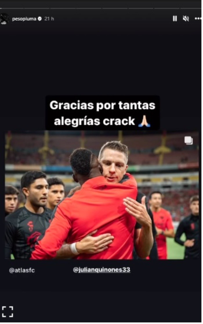La emotiva despedida de Peso Pluma a Julián Quiñones tras su salida de Atlas