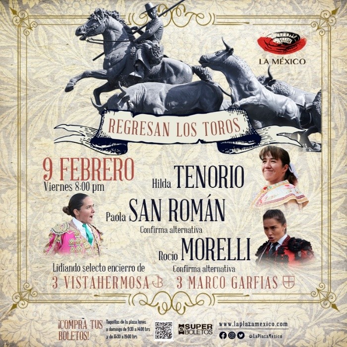 La Plaza México, uno de los escenarios más emblemáticos de la tauromaquia, se alista para un nuevo evento, la tercera corrida protagonizada exclusivamente por mujeres. En un esfuerzo por celebrar la participación femenina en la tauromaquia, la Plaza México ha lanzado una promoción especial para todos los aficionados que desean ser parte de esta experiencia única. A continuación, te compartimos toda la información necesaria para no perderte este evento. La corrida se llevará a cabo el próximo viernes 9 de febrero, a partir de las 20:00 horas. Las localidades del recinto estarán disponibles en una promoción de 2x1. Hilda Tenorio, Pola San Román y Rocío Morelli serán las encargadas de amenizar esta emocionante corrida.