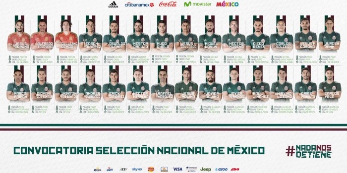 El director técnico de la Selección Mexicana, Juan Carlos Osorio, anunció la prelista de 28 jugadores que conformarían la alineación del equipo nacional para el Mundial Rusia 2018, dijo que para el armado puso en consideración los lesionados y la combinación de torneos donde están participando.En el anuncio destaca la confirmación del capitán Rafael Márquez que jugaría el quinto mundial de su carrera y por otro lado la ausencia de Rodolfo Pizarro cuyo futuro con Chivas ha causado polémica en los últimos días.Al respecto, el seleccionador explicó: "Para la posición de Rodolfo (Pizarro) compite directamente con Marco Fabián, Carlos Vela y Giovani dos Santos. Se tiene que establecer directamente una competencia con su par, yo creo que en este momento le queda difícil, pero a futuro es una gran opción".Sobre la inclusión de Rafael Márquez en la lista, Juan Carlos Osorio dijo: "Yo creo que está claro que Rafa Márquez es un hombre de futbol con una carrera extraordinaria (...) pero queremos que al final la decisión sea por lo que le pueda aportar al equipo dentro de la cancha".Sobre el tapatío Andrés Guardado, Juan Carlos Osorio anunció que será operado antes de integrarse a la Selección Mexicana: "Probablemente estará acá el día miércoles para ser intervenido, esperando que todo se solucione. Todo está acordado entre nuestro departamento médico y el del Betis".Estos son los nombres anunciados por el técnico de la Selección Mexicana:Porteros (3)Defensas (9)Volantes (8)Delanteros (8) Será el próximo 4 de junio cuando se haga el anuncio de la lista definitiva de los 23 jugadores que viajarán a Rusia para ser parte de la Selección Mexicana para el Mundial.Los siguientes partidos del Tri son: 28 de mayo en Los Ángeles contra Gales, 2 de junio en el Estadio Azteca contra Escocia, el 9 de junio en Copenhague, contra Dinamarca.El 11 de junio los seleccionados aztecas harán su arribo a Moscú para la competición que arranca el 14 de junio. El primer juego de México en el Mundial es el domingo 17 de junio contra Alemania.Sigue actualizaciones en Twitter @informador_DEPPara los lectores de EL INFORMADOR en internet, los jugadores mexicanos que se desempeñan en el extranjero deberían formar el plantel titular que enfrente los partidos del Mundial de Rusia 2018.Una encuesta en la que han participado hasta ahora 511 personas arroja como resultado un cuadro inicial compuesto exclusivamente por futbolistas que juegan fuera del país.Andrés Guardado, Héctor Moreno y Marco Fabián fueron los que acapararon las preferencias en el sondeo interactivo de "Arma tu Tri para Rusia" que sigue aceptando participaciones de parte de la comunidad.