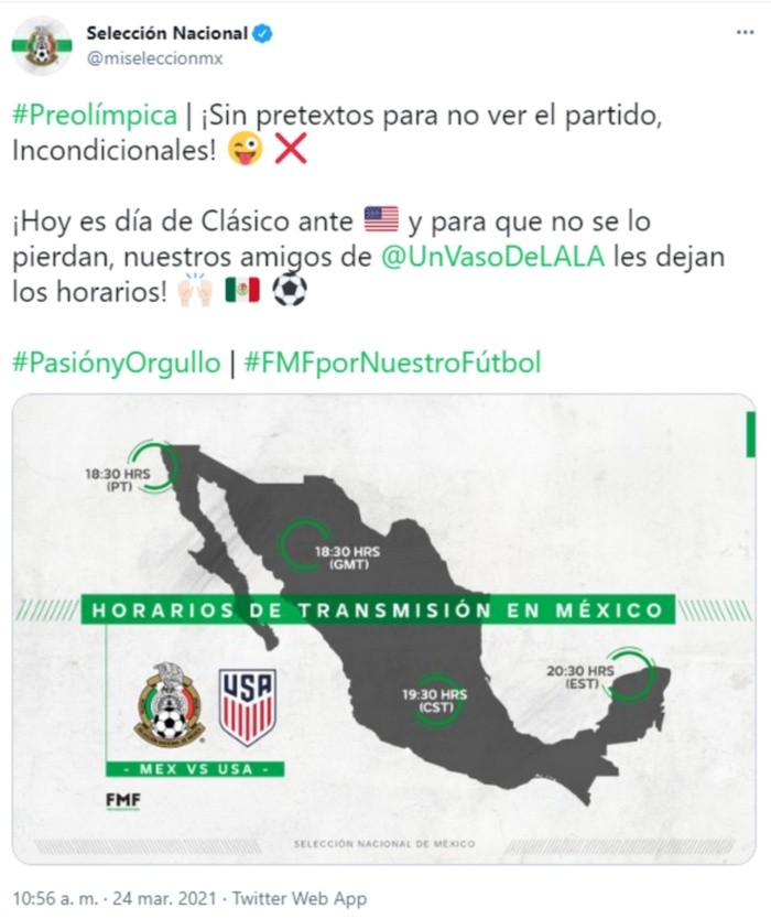 Este miércoles, la Selección Mexicana y Estados Unidos se enfrentarán en actividad del Grupo A del torneo Preolímpico de la Concacaf, que se lleva cabo en esta ciudad de Guadalajara.Ambos equipos nacionales buscan el boleto que los lleve a los Juegos Olímpicos de Tokio, por lo que en el partido de esta noche buscan amarrar el liderato del sector.Tanto la Selección Mexicana Sub-23 como Estados Unidos iniciaron el torneo Preolímpico con paso perfecto, con dos triunfos, por lo que comparten la cima del Grupo A con seis puntos cada uno, por lo que se medirán en partido para definir quién avanzará a las semifinales como líder.Con mejor diferencia de goles, la Selección Mexicana luce favorita, con lo que le basta con obtener un empate. Sin embargo, a decir del técnico Jaime Lozano, la intención es ligar la tercera victoria de la competencia.El partido se jugará esta noche en la cancha del Estadio Jalisco en punto de las 19:30 horas.OF