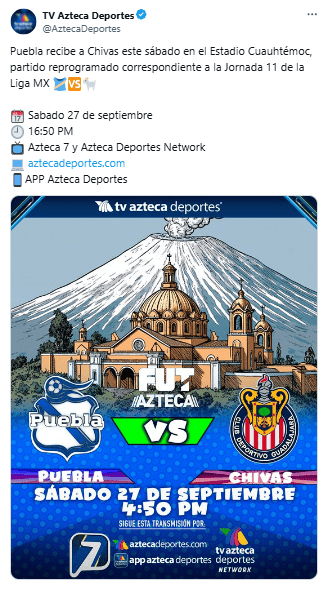 El duelo Puebla vs Chivas, correspondiente a la Jornada 11 del Torneo Apertura 2025 de la Liga MX, debió disputarse ayer, pero fue reprogramado a este día debido a la intensa lluvia en la capital poblana. Ahora, los camoteros recibirán a los tapatíos con la misión de dar la sorpresa en casa y dejar el fondo de la tabla. Si quieres seguirlo, aquí te compartimos el horario y los canales de transmisión EN VIVO.El partido de la J11 se debió jugar ayer viernes 26 de septiembre de 2025 en la ciudad de Puebla, pero se cambió para hoy. Con este cambio, el duelo stá programado para arrancar a las 17:00 horas, tiempo del centro de México.La transmisión del partido estará disponible a través de televisión abierta y por streaming. Además, podrás seguir el minuto a minuto en las redes sociales de los dos equipos y a través de EL INFORMADOR.Los malos resultados ya están teniendo consecuencias para el Puebla y para prueba la escasa asistencia que se presentó el pasado martes en su casa, en su encuentro de la J10.El propio técnico Hernán Cristante ya no solo pide a la afición asistir al estadio para apoyar a los Camoteros frente a Chivas, ruega para que los seguidores del Puebla no dejen caer aún más a un equipo que se mantiene en el sótano de la Tabla General con solo cinco puntos, resultado de una victoria, dos empates y siete derrotas.De capa caída, La Franja deberá reponerse y recibir a los dirigidos por Gabriel Milito, quienes tampoco han tenido resultados sobresalientes, pese a haber ganado por 3-1 su más reciente encuentro frente a Necaxa.Con 11 unidades, los tapatíos se ubican en la onceava posición de la clasificación, pero luego de tres victorias, dos empates y cinco derrotas y aún no logran colocarse dentro de los diez primeros equipos que podrán aspirar al título.El partido será este sábado 27 de septiembre en el Estadio Cuauhtémoc de Puebla, Puebla.*Con información de SUN **Horarios del centro de México ***Sujeto a cambios de transmisión----*Mantente al día con las noticias, únete a nuestro canal de WhatsAppOF