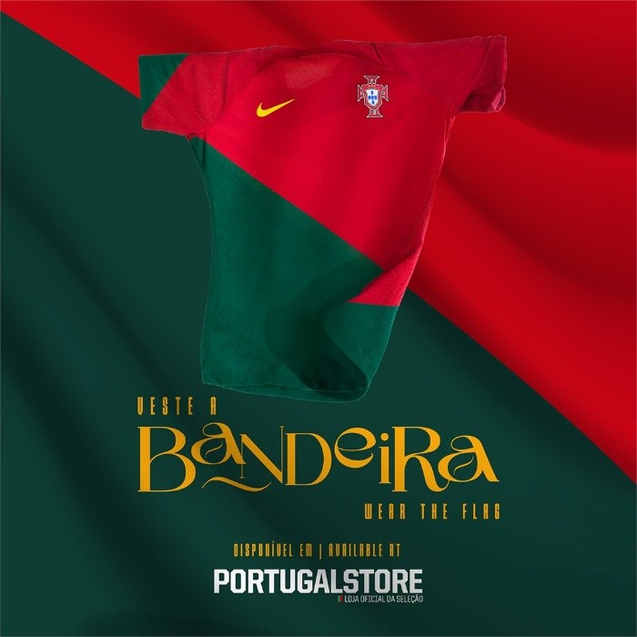 Una de las camisetas más esperadas para el Mundial del Qatar 2022 es sin duda la de la Selección de Portugal, pues además de que los lusos están llamados a ser protagonistas en la justa mundialista, esta podría ser la última camisa que porte Cristiano Ronaldo en una Copa del Mundo. Conscientes de ello, Nike, la marca que patrocina a Portugal, lanzó dos playeras que rápidamente han adquirido aceptación por parte de los aficionados del equipo lusitano y del mismo Cristiano Ronaldo. La playera de local se divide en dos partes y luce los tradicionales colores de la bandera de Portugal. Rojo arriba y verde en la parte inferior. El short en este caso también es color verde completamente y las medias en su mayoría rojas, solo con la parte superior en rojo. En el caso del jersey de visitante, es color hueso con vivos en azul y una raya horizontal a la altura del pecho con los colores rojo y verde de la bandera. En su promoción, Portugal ha utilizado a sus máximos referentes como Bruno Fernandes, Joao Cancelo, Bernardo Silva, todos liderados por el capitán y estrella, Cristiano Ronaldo. JL