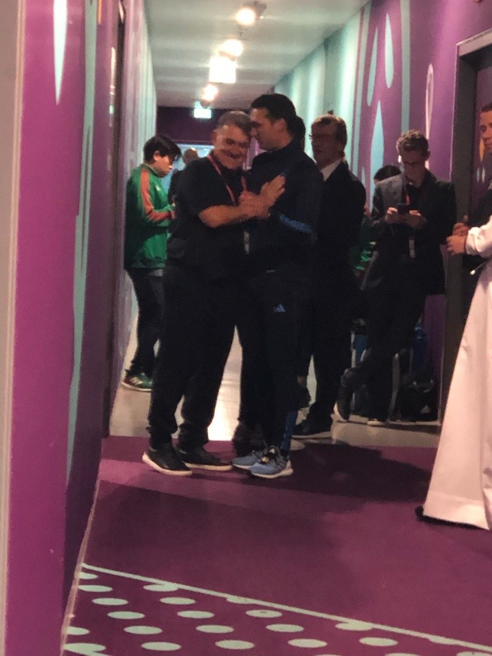 El aficionado mexicano está disgustado y es evidente tanto en redes sociales, como en las calles del Mundial de Qatar 2022. Para muchos, México le jugó como equipo chico al combinado de Argentina y el gran señalado es Gerardo "Tata" Martino. Por si fuera poco, el Tata Martino fue captado en el vestidor entre risas con el estratega de Argentina, Lionel Scaloni. Fuentes de EL INFORMADOR confirmaron que fue el propio Scaloni quien acudió a buscar al Tata, para dejar una especie de "polémica volúmen 2", pues cabe recordar que el Tata fue criticado en julio pasado tras ser visto en Argentina con Scaloni, en lugar de acudir a ver los juegos de la Liga MX. En la foto se puede apreciar como Gerardo Martino y Lionel Scaloni comparten risas, tras la victoria que le propinó la albiceleste 2-0 a la escuadra Tricolor. Este resultado ha dejado a México en la lona y luce muy complicado que pueda acceder a los Octavos de Final de Qatar 2022. Pese a esta derrota, Gerardo Martino se mantiene esperanzado de poder acceder a la siguiente ronda ganándole a la escuadra de Arabia Saudita y que el marcador en el otro enfrentamiento les favorezca. De momento, Gerardo Martino ha vuelto a dejar una polémica imagen en un momento en el que el aficionado mexicano se siente decepcionado, harto y cansado de ir de decepción en decepción. JL