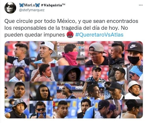 A través de redes sociales diversos usuarios identificaron y compartieron distintos videos e imágenes en los cuales se apreciaban los rostros de los señalados como agresores en la emboscada ocurrida ayer en el estadio "La Corregidora" durante el partido de Querétaro vs Atlas.En las publicaciones se puede apreciar a distintos hombres que participaron en las agresiones, tanto en las tribunas, como dentro de la cancha, quienes golpeaban a las personas y las pateaban, pese a que algunas de las víctimas permanecían ya inertes y con heridas visibles.Algunas personas con la playera del equipo del Querétaro incluso lucen sonrisas en el rostro mientras ocurren las agresiones.Hubo tambíen quién elaboró un collage con los rostros de todos los presuntos agresores, quienes habían sido captados en diversos videos e imágenes tomados tanto por aficionados que asistieron al partido como por la prensa.Algunos internautas incluso compartieron algunos perfiles de redes sociales asegurando que habían encontrado a los responsables y pidiendo a las autoridades que tomarán cartas en el asunto.Será el Ministerio Público de ese estado el que se encargue de reunir las pruebas correspondientes para su localización e iniciar así el proceso en su contra.Por la mañana en rueda de prensa el gobernador de Querétaro, Mauricio Kuri, aseguró que ya instruyó a la Fiscalía del Estado para que lleve a cabo las diligencias correspondientes a fin de dar con los señalados como agresores, a fin de que se les investigue penalmente por el delito de Tentativa de Homicidio, y para asegurarse que no vuelvan a pisar el estadio "La Corregidora".“Me quiero dirigir a ti, criminal, no me importa dónde estés, donde hayas nacido, o dónde te estés escondiendo, voy a dar contigo. Lo que hiciste ayer lastimó y ofendió a todas las familias queretanas y de todo el País, lastimaste a visitantes cuando somos un ejemplo de hospitalidad, pusiste en riesgo a las familias que querían disfrutar de un evento deportivo. Voy a dar contigo, no mereces estar en las calles queretanas y no lo vas a estar más. Tu sentencia legal y social va a ser del tamaño de tu cobardía y tu violencia”, expresó el gobernador de ese estado.JL